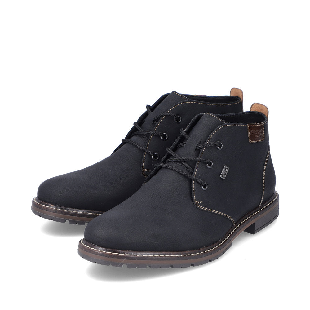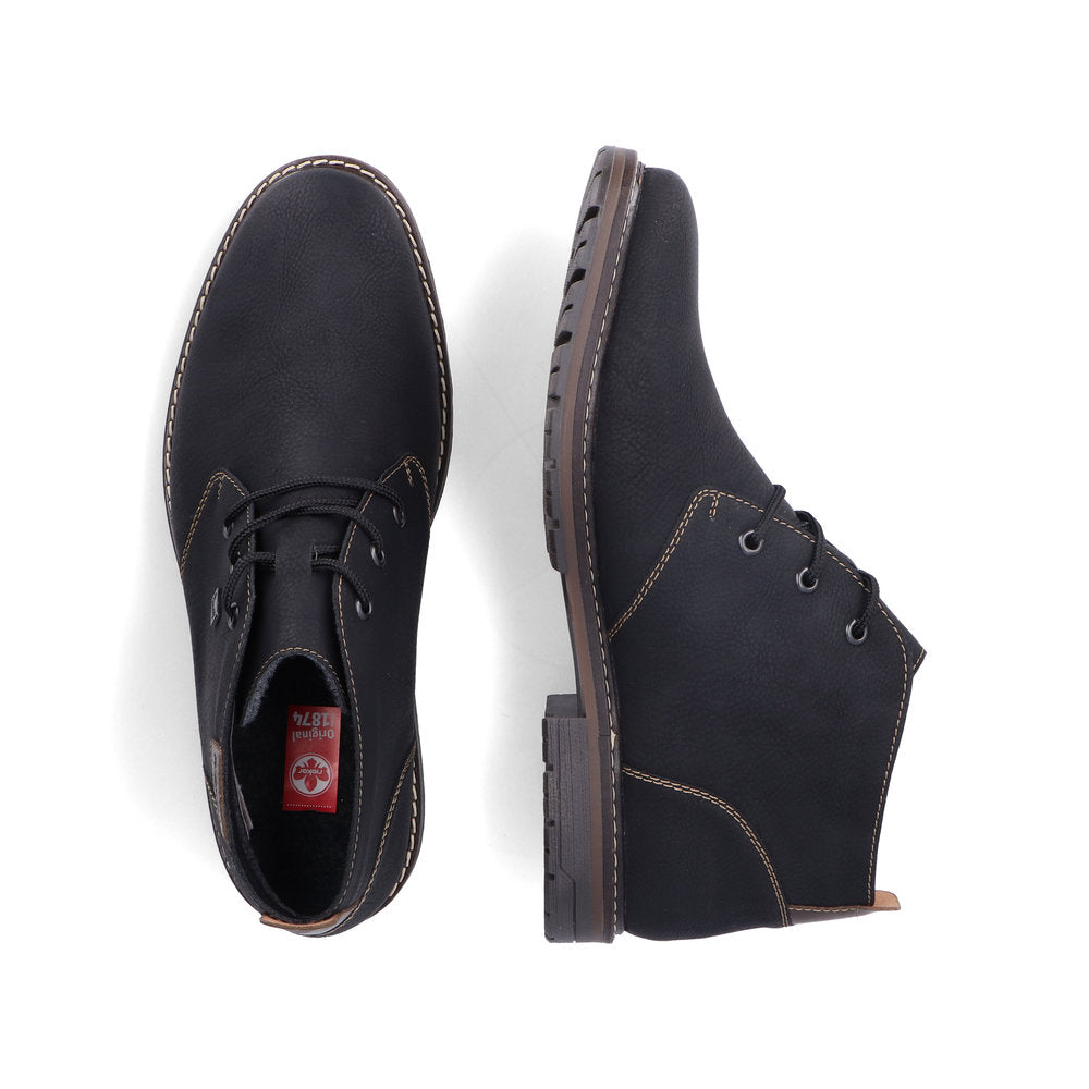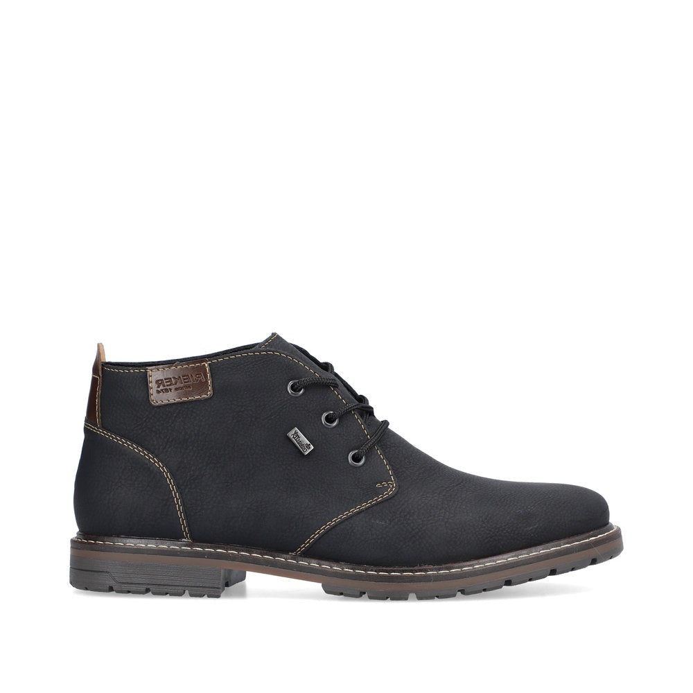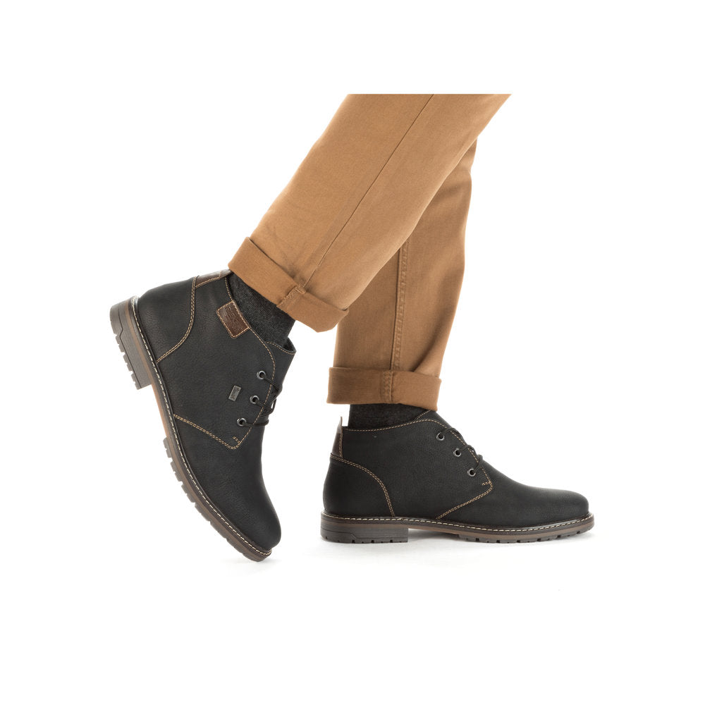 Rieker 13739 is a smart styled ankle boot with a grippy rubber sole. This lace up boot is made from a soft synthetic upper with 3 eyelets for a secure fit. This boot can be multi purpose and suitable for work wear or leisure. Rieker 13739 has a sole with a separate heel giving it a more formal look. Featuring Rieker anti stress technology.