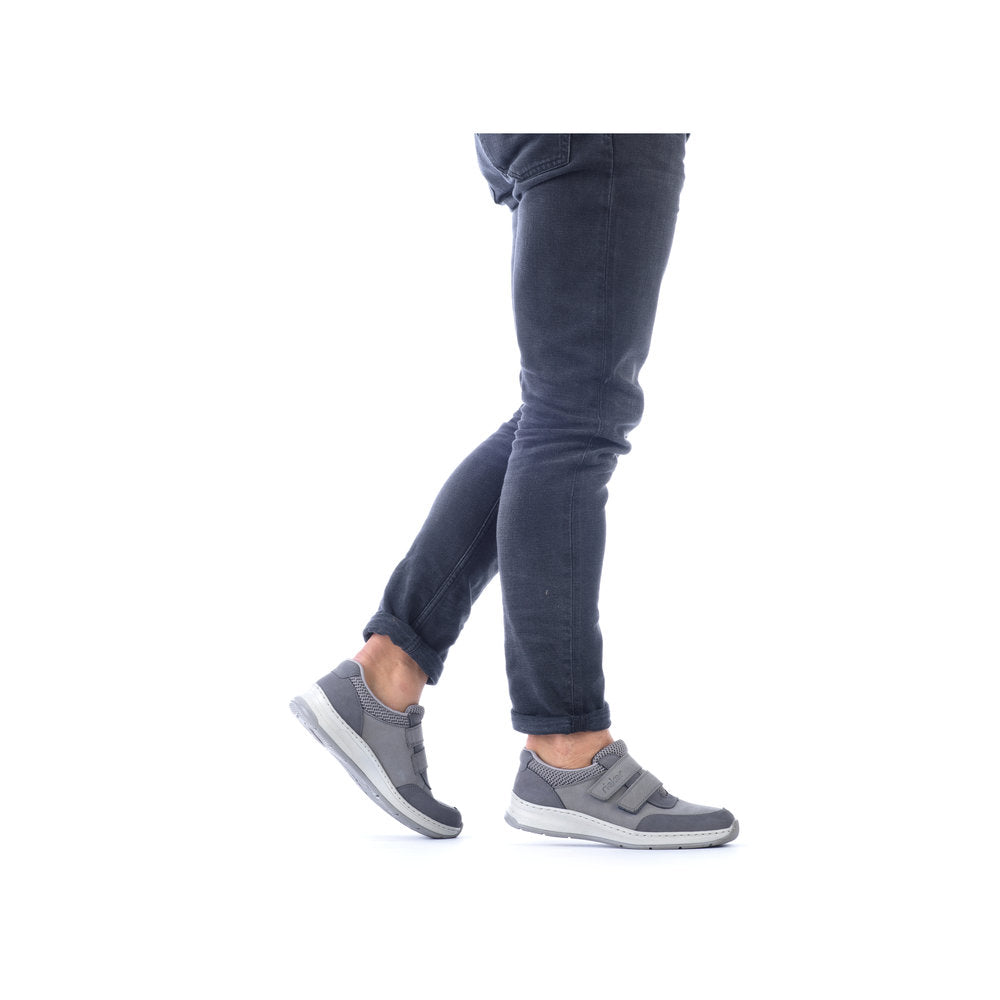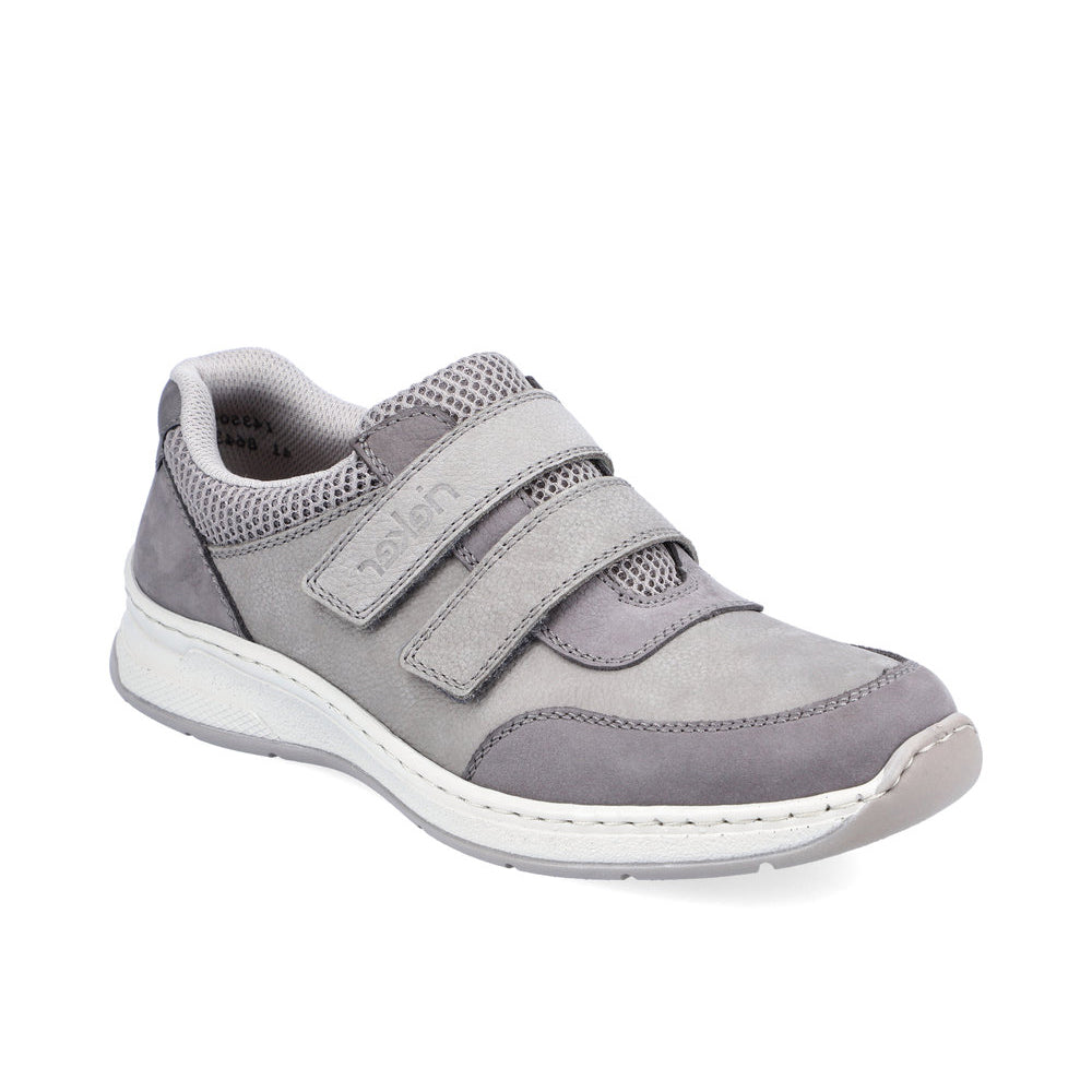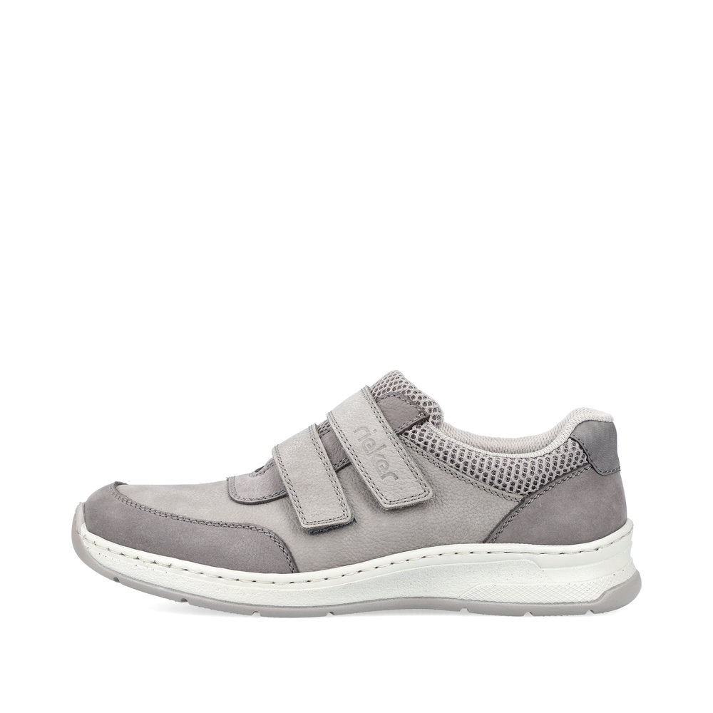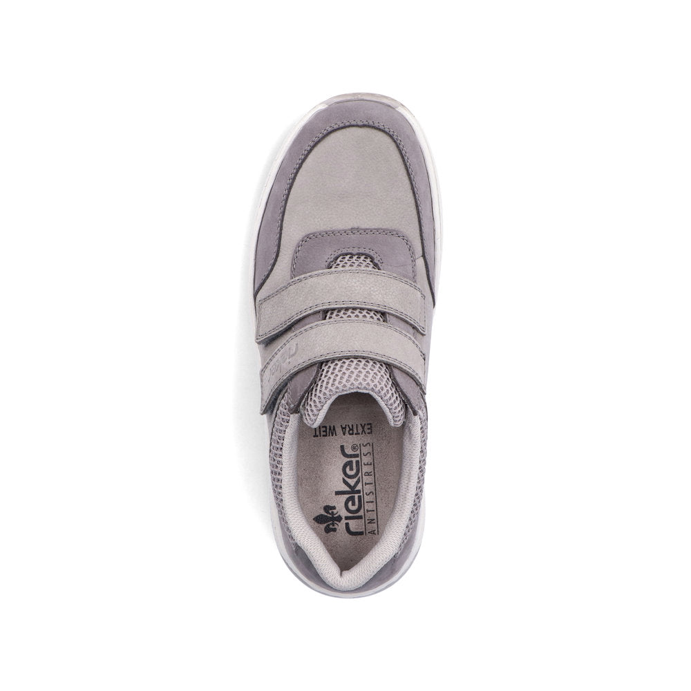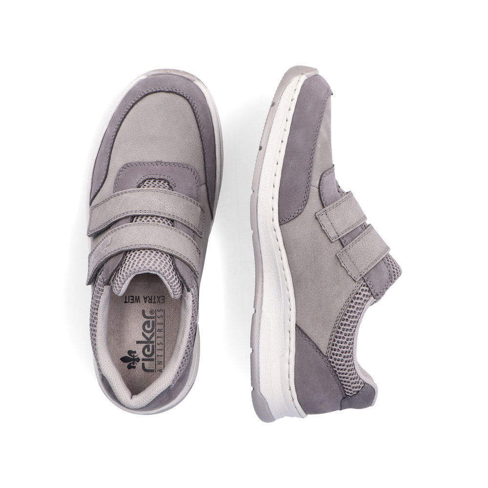 Rieker 14350 grey nubuck leather shoes with rip-tape closure in an extra wide fitting.