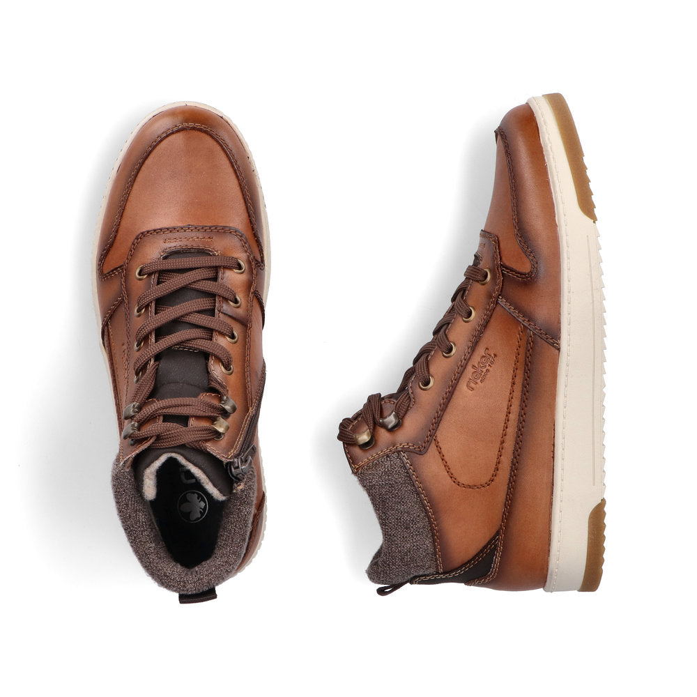 Rieker men's soft leather casual hi-top sneakers. These soft tan leather sneaker boots look great with jeans for a smart casual look.