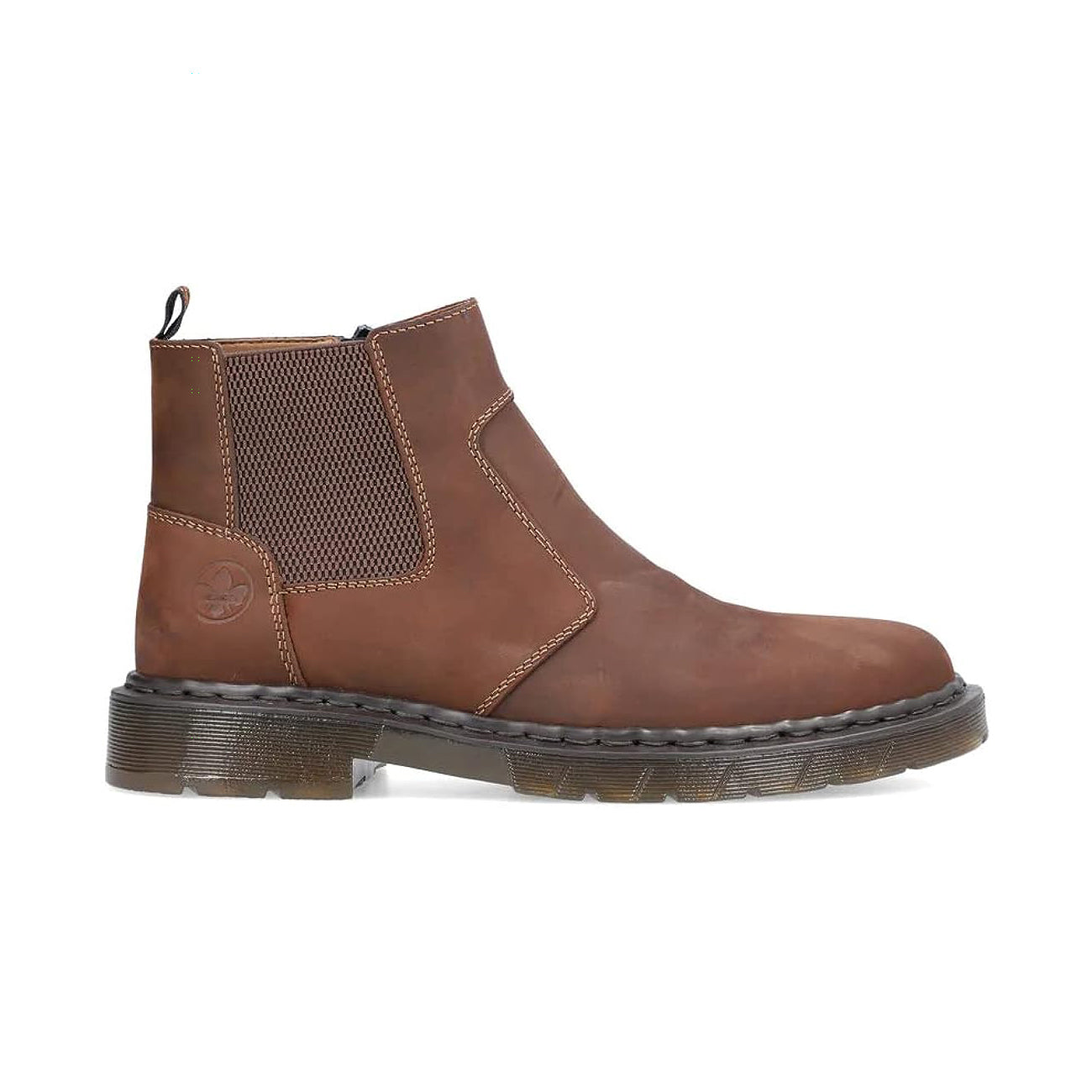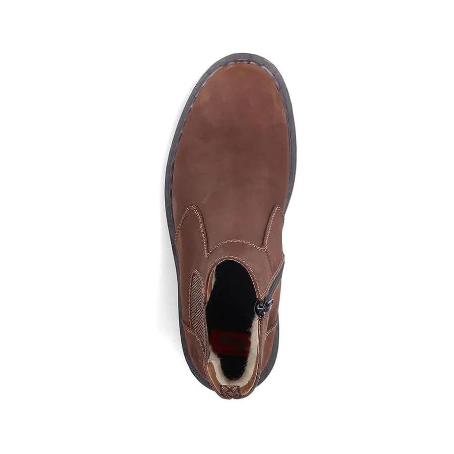 Rieker nubuck leather upper Chelsea boots. These smart casual lace up boots look great with smart denim jeans. With a traditional block heel and grippy rubber sole these are practical and comfortable smart winter footwear.