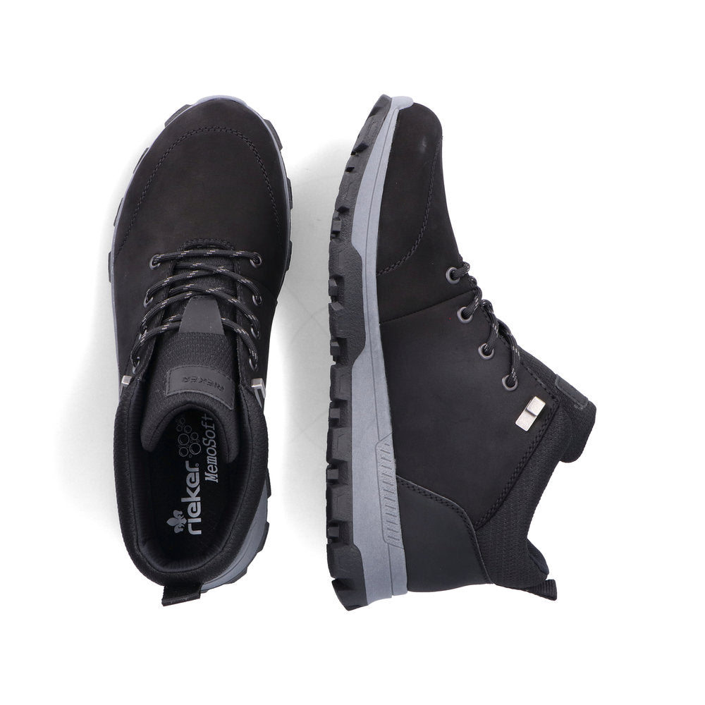 Mens hi-top charcoal sneaker boots with warm lining and Rieker-tex waterproof breathable membrane.