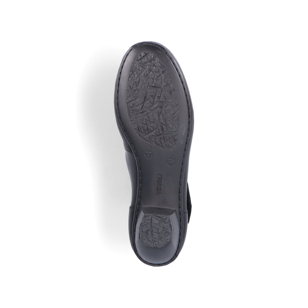 Vanessa is a stylish soft leather shoe from the Rieker range. It's assymetrical dual strap with hook and loop fastening makes this shoe easy to fit. The deep toe box allows plenty of wiggle room. Vanessa is an attractive shoe that is formal enough for work and comforable for leisure wear.