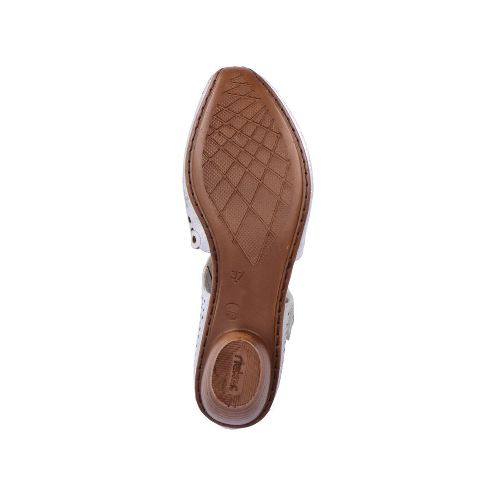 These soft leather shoes have an oval toe shape to give you plenty of room and a touch and close cleverly positioned strap to allow an adjustable fit. The laser cut design allows air to get to your feet and all this with a decorative and intricate design. The 43753 model has an open waist and a small heel which helps to give a dressy look with comfort.