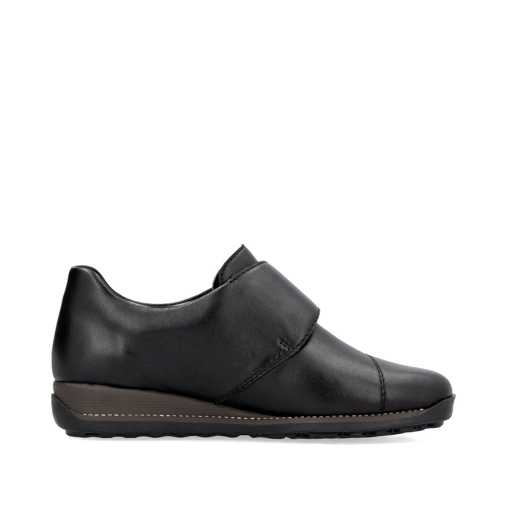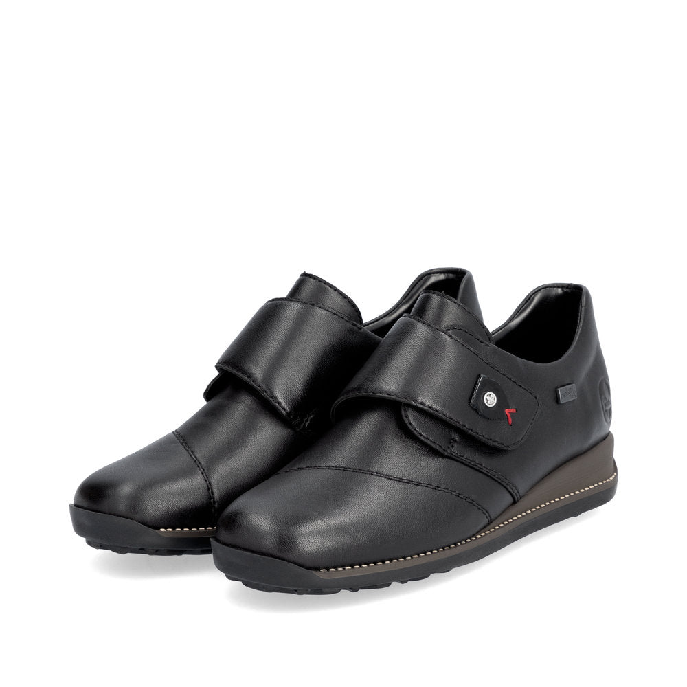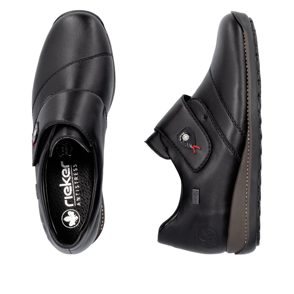 Practical winter shoes with a Waterproof Rieker-Tex membrane. These flexible soft leather shoes are perfect for bad winter days. No laces to fasten, just a single velcro strap makes putting on these shoes a breeze.