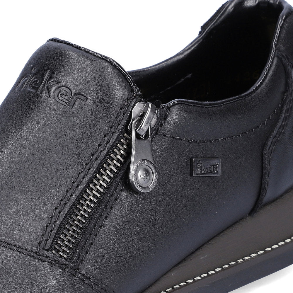 Practical winter shoes with a Waterproof Rieker-Tex membrane. These flexible soft leather shoes are perfect for bad winter days. No laces to fasten, just a single zip makes putting on these shoes a breeze.