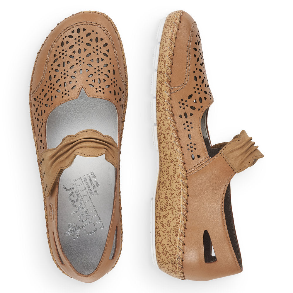 The wide fitting front but a secure, slightly narrower heel fitting make Cindy a really well fitted shoe. The foot bed is like a pillow with more cushioning than most other Rieker styles.