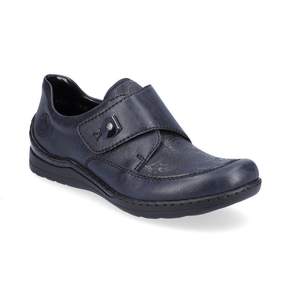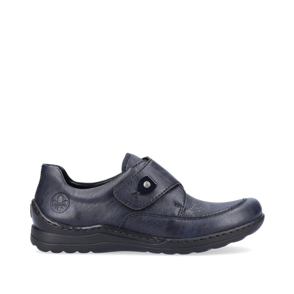 The wide fitting shoes with super soft stretch fabric top and single hook and loop strap. These soft shoes have a deep heel and a soft and flexible rubber outer sole.