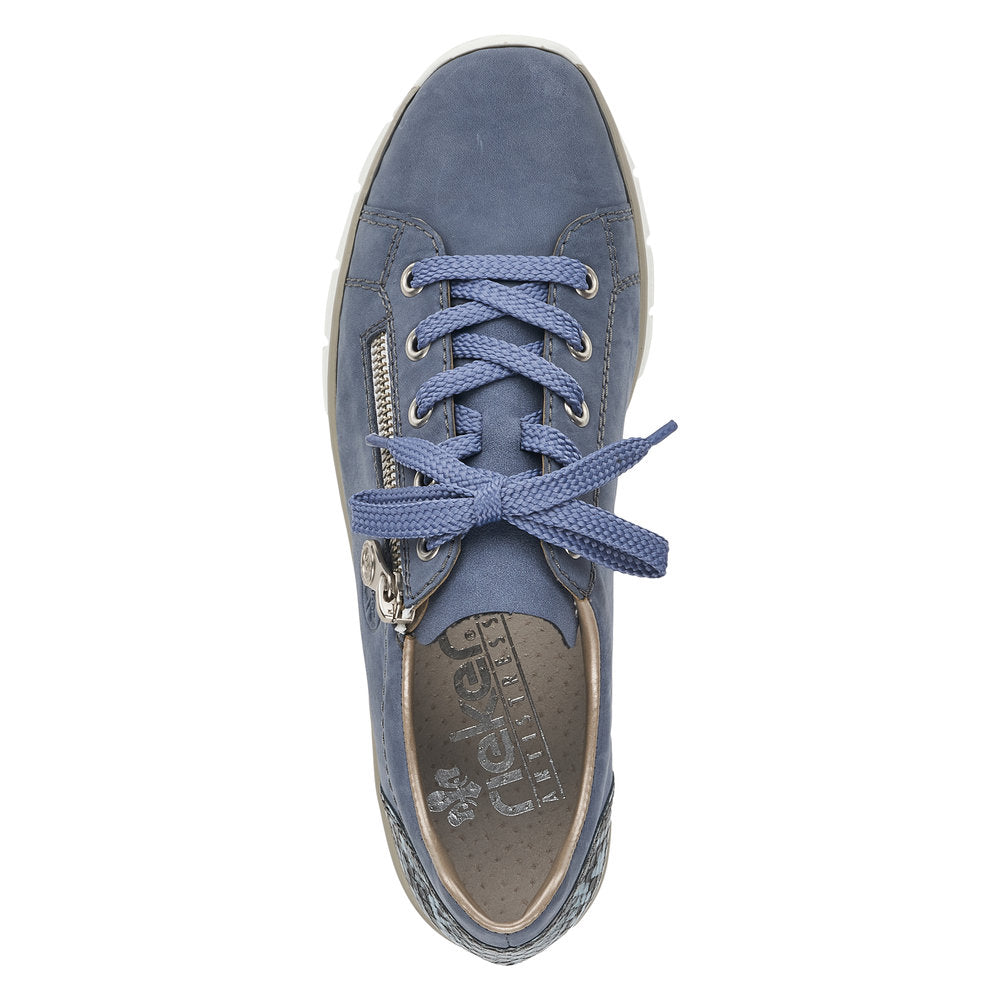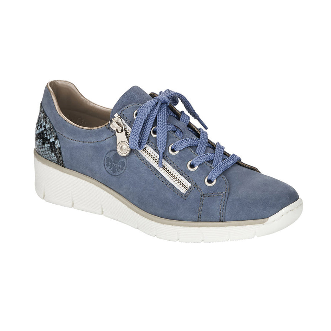 53702 Doris denim blue lace up shoes with 35 mm wedge heel and handy zip fastening for easy on/off.