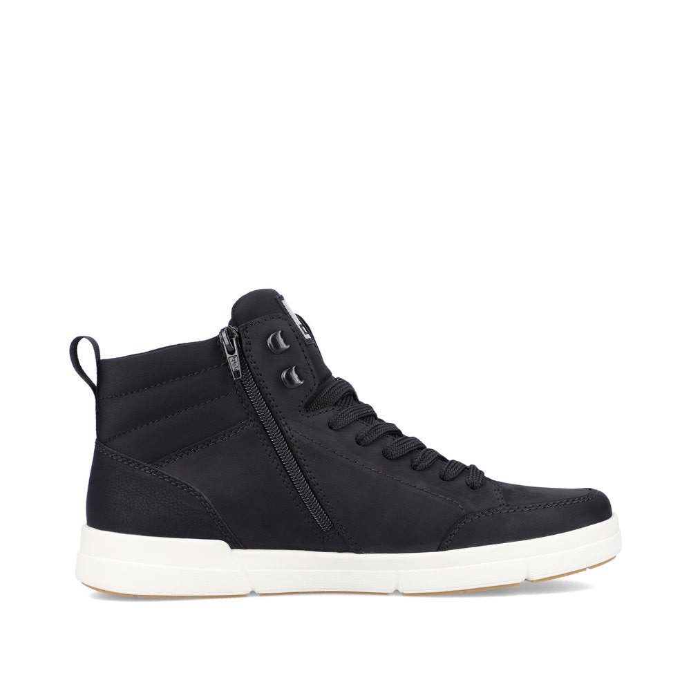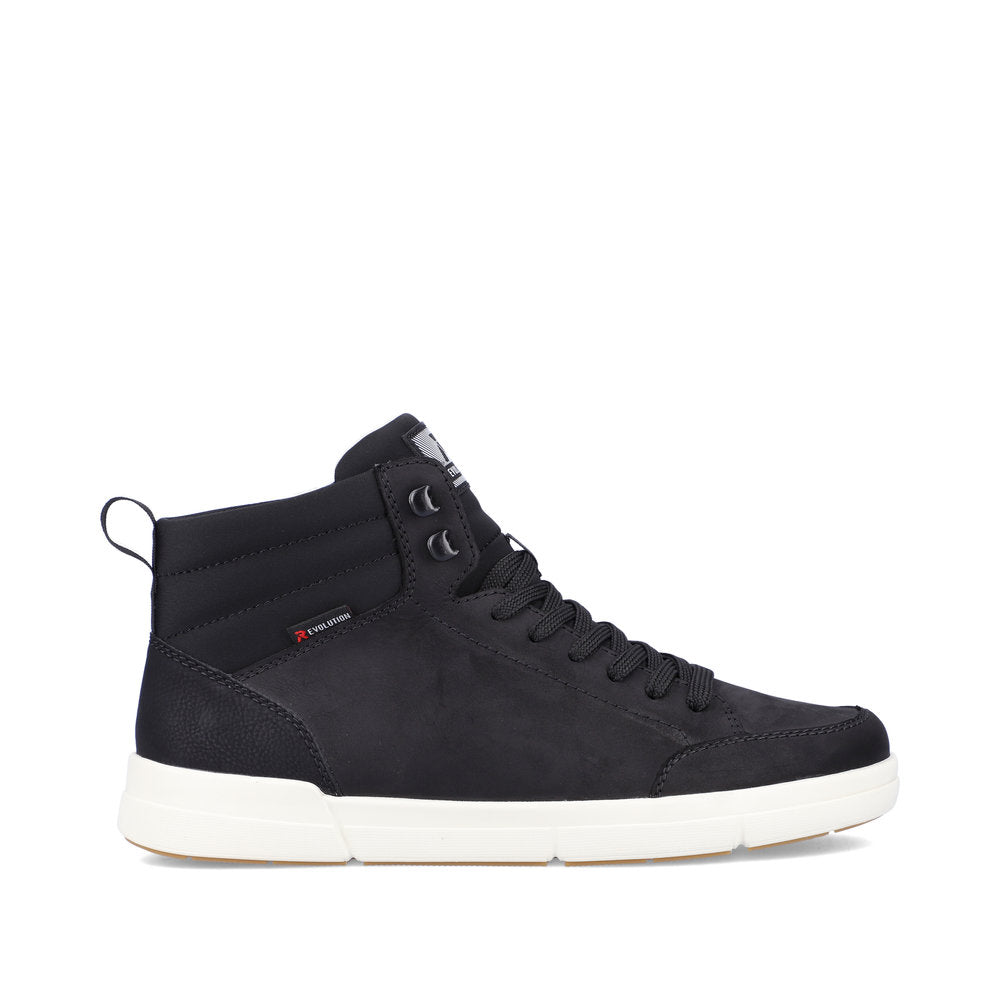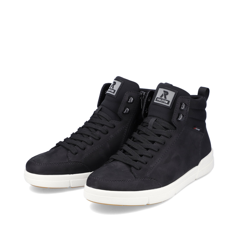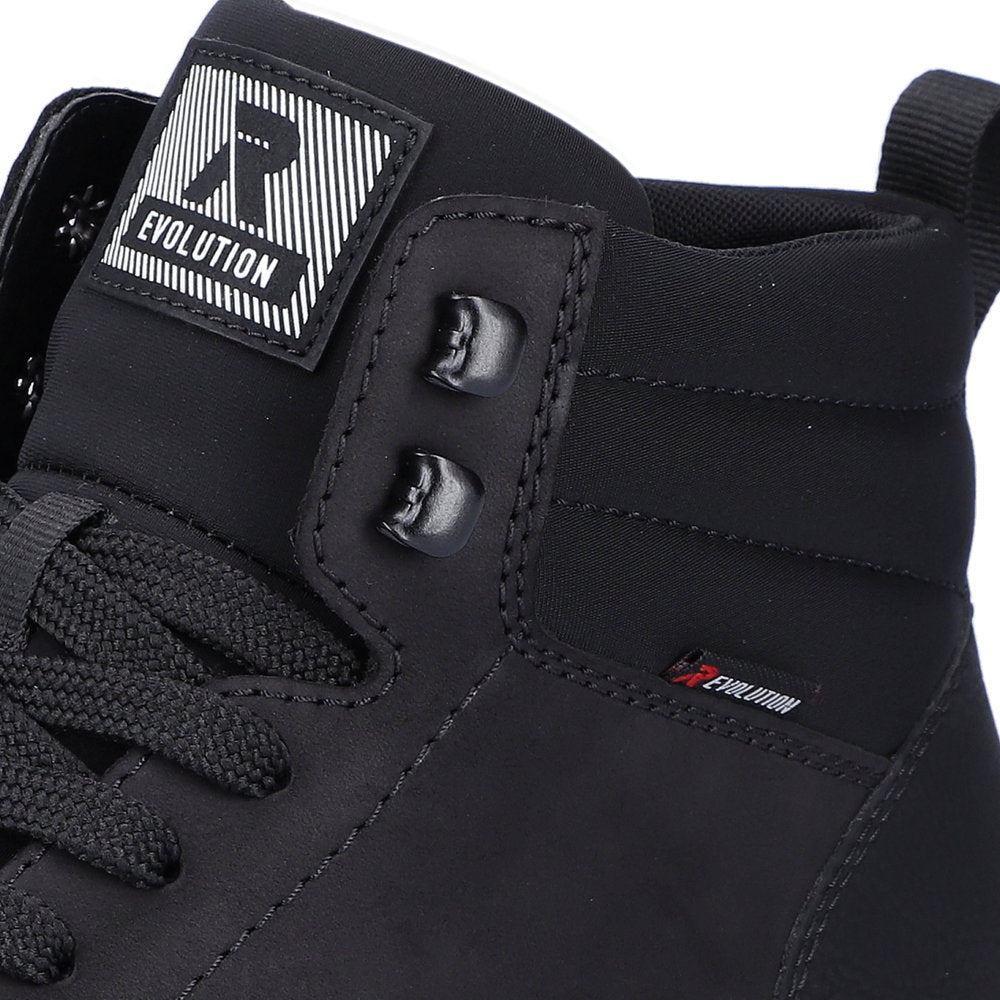 Rieker Evolution men's black waxy leather sneaker boots with side zip.