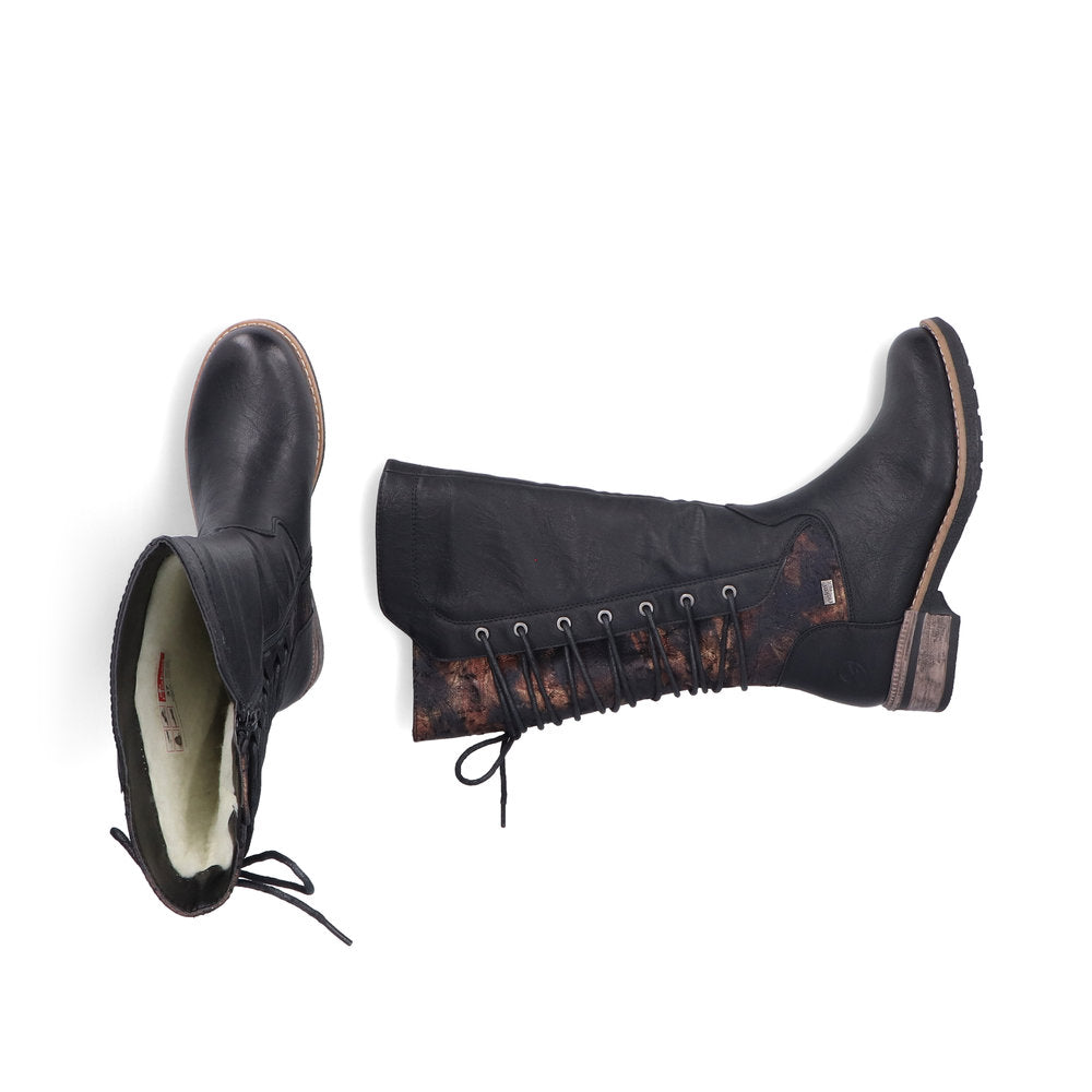 Reiker 94693 black 3/4 length boots with warm wool lining and a Rieker-tex water resistant membrane.