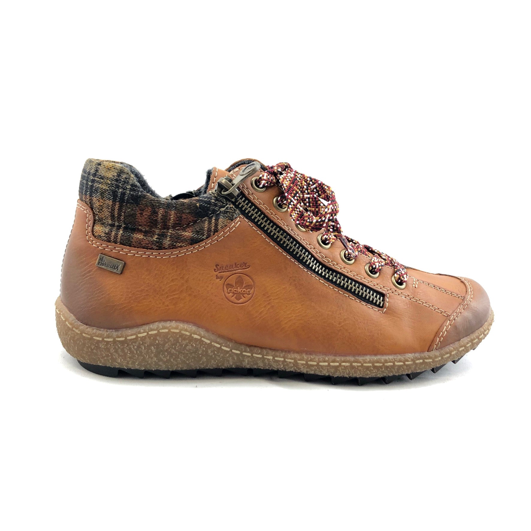 Rieker L7516 Liv. Lace up booties with water resistant Rieker tex membrane and grippy rubber sole.