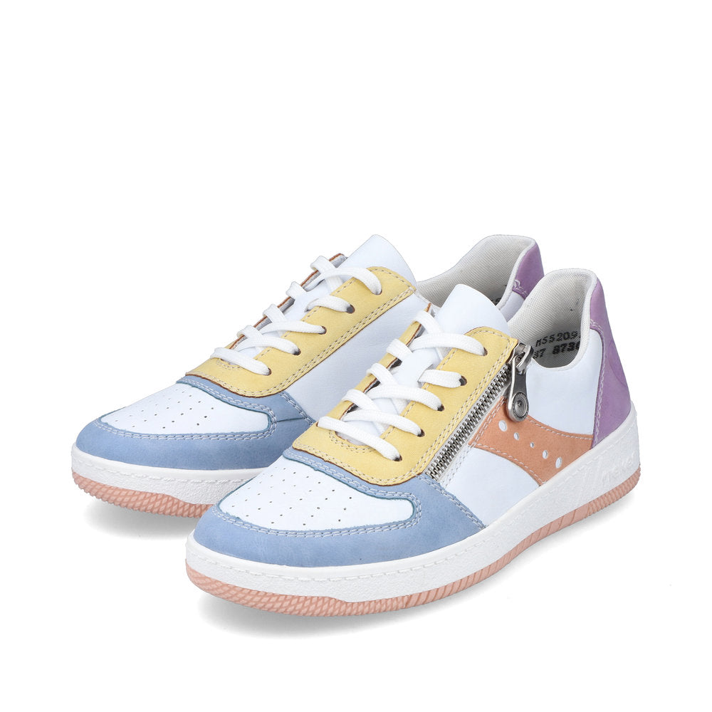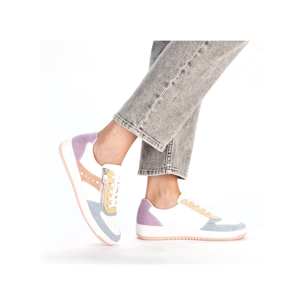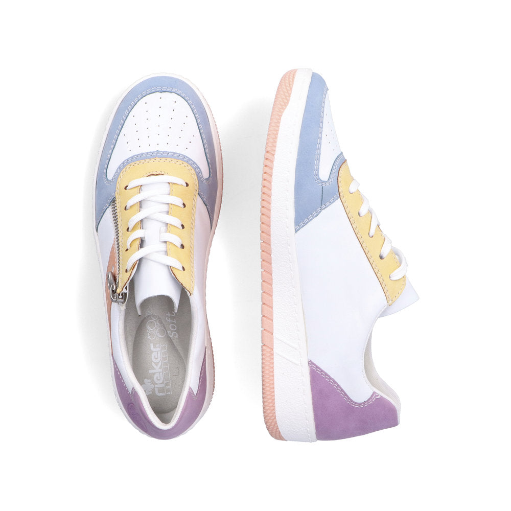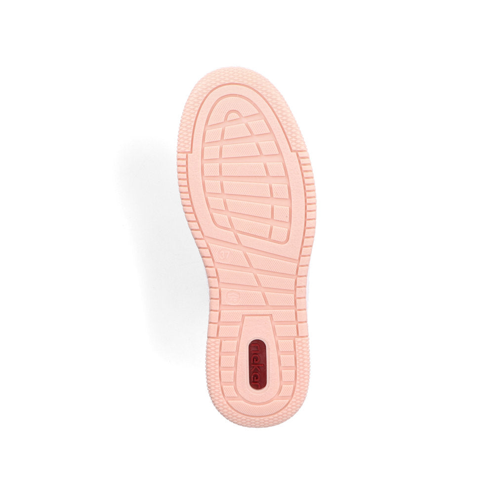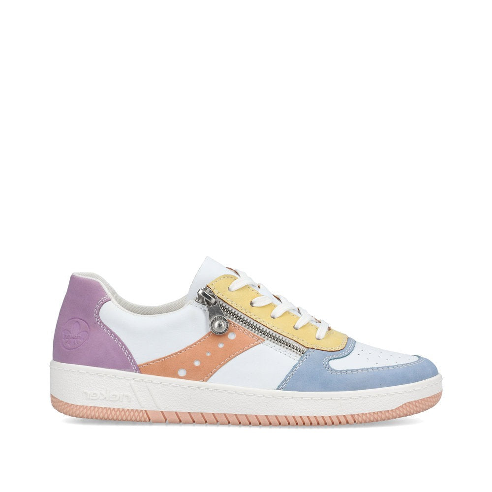 Live life in color with these funky retro pastel sneakers from Rieker! Pair with all colours, with a fun white exterior with pastel accents, this trainer will make a cool fashion statement, while its bright sole adds a pop of fun and flirty flair. From urban adventures to spontaneous days off these comfy sneakers will take you everywhere.
