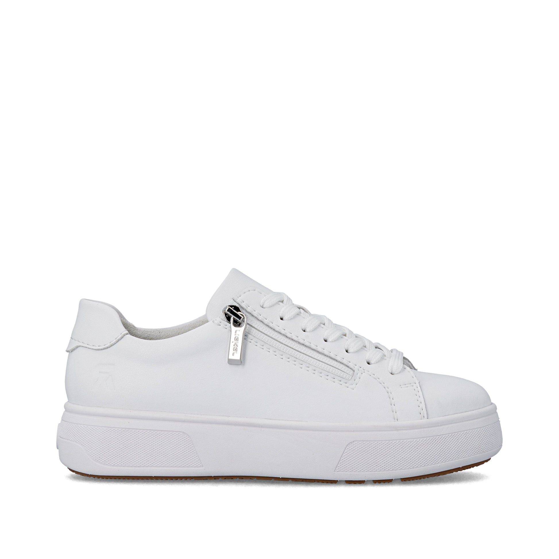 Smart white leather sneakers with round toe perfect for wearing with dresses. M7701 has an inch and a half platform sole for extra height and a side zip for easy on / off.