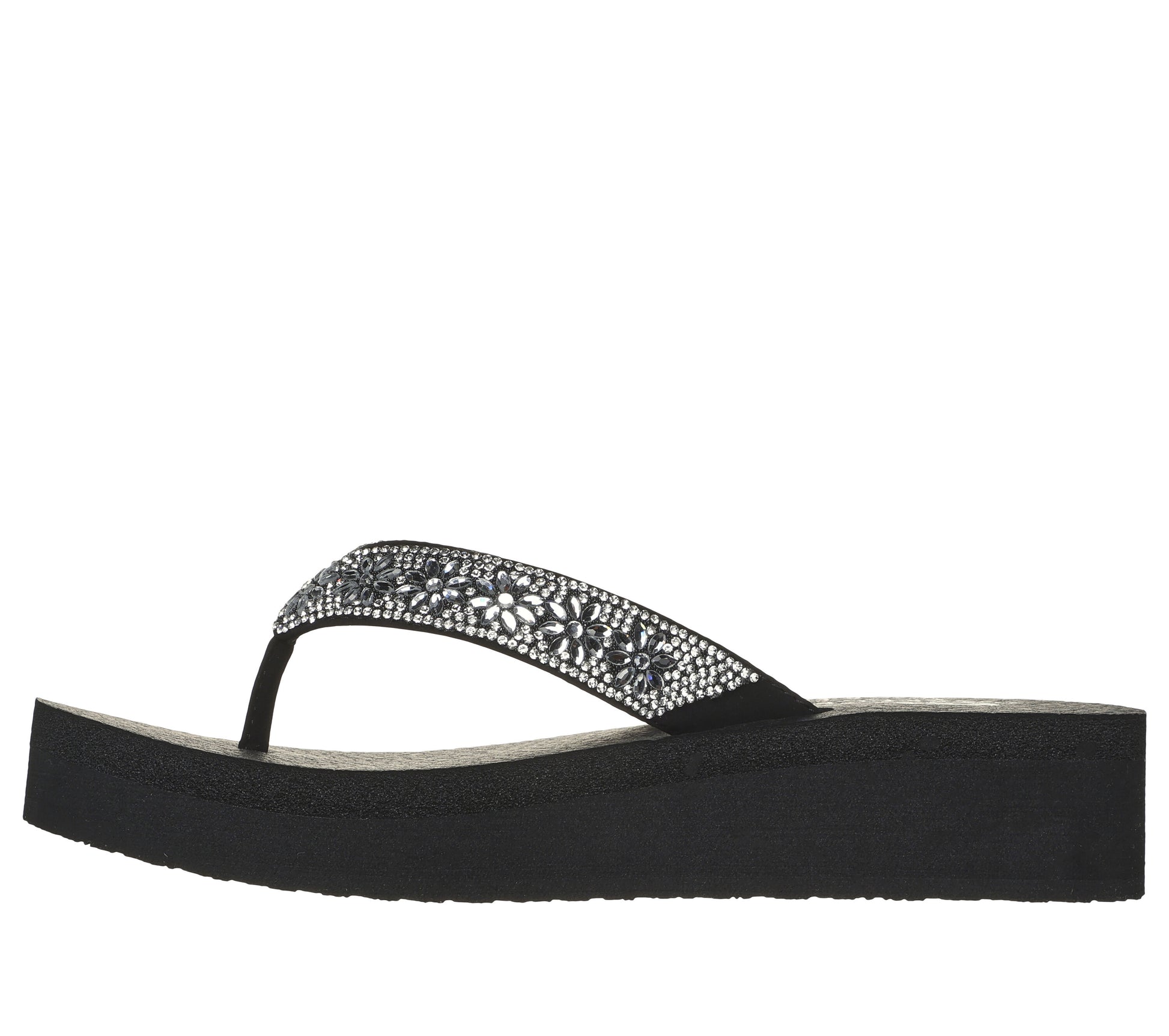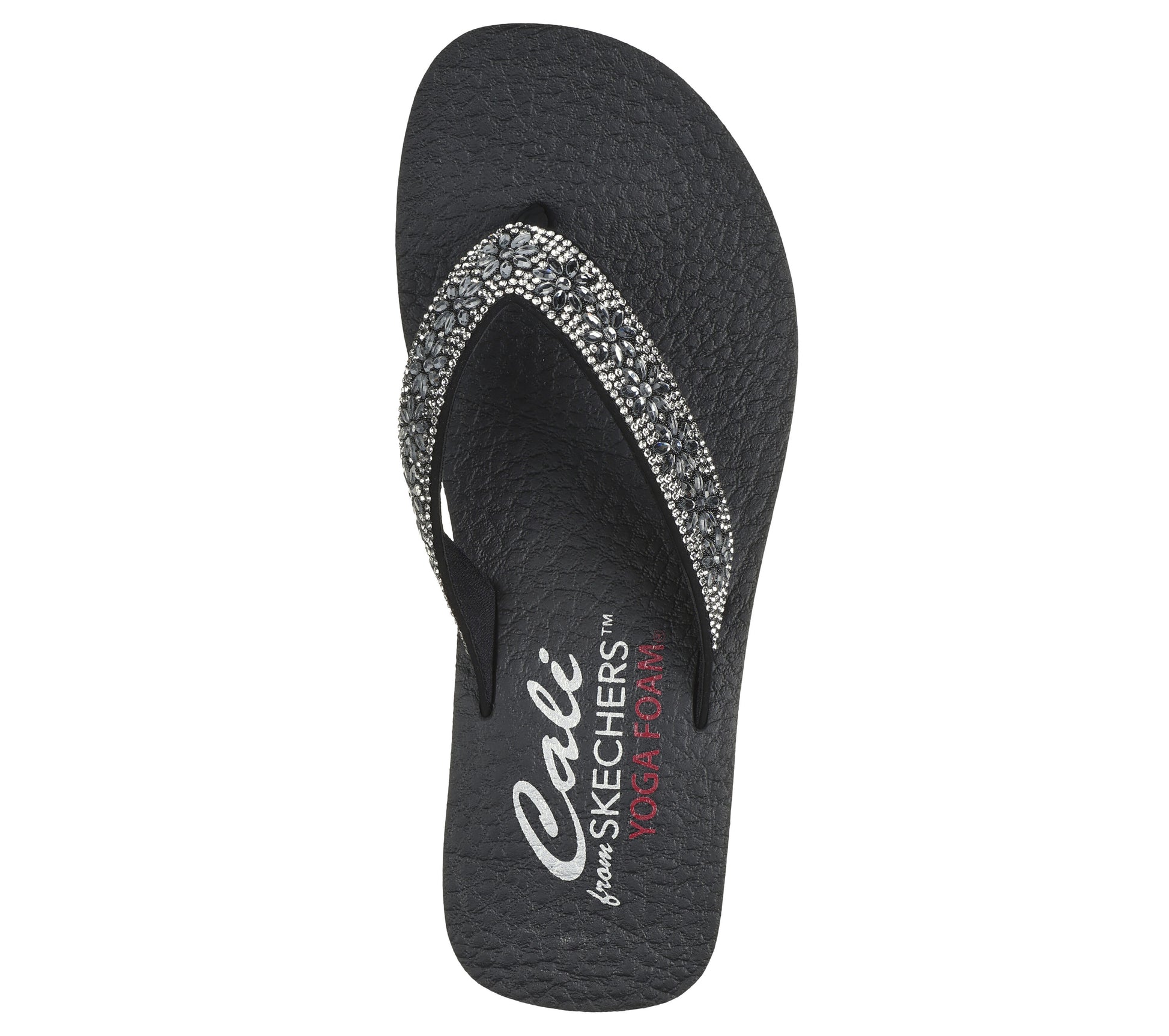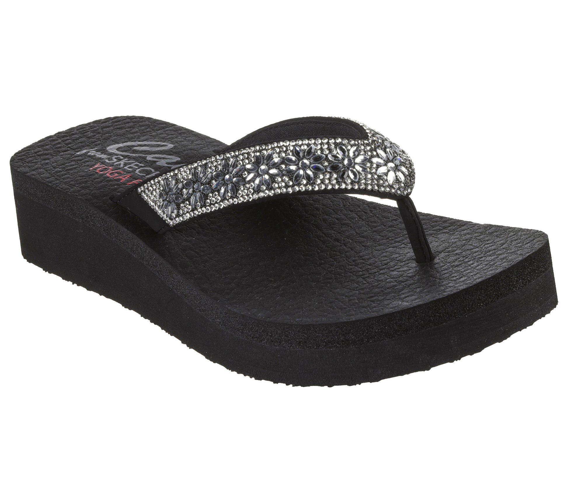 Dazzle your steps in floral style and comfort with Skechers Cali® Vinyasa - Wild Daisies. This vegan thong sandal features a synthetic upper with flower patterned rhinestone details and a cushioned Yoga Foam® comfort footbed.