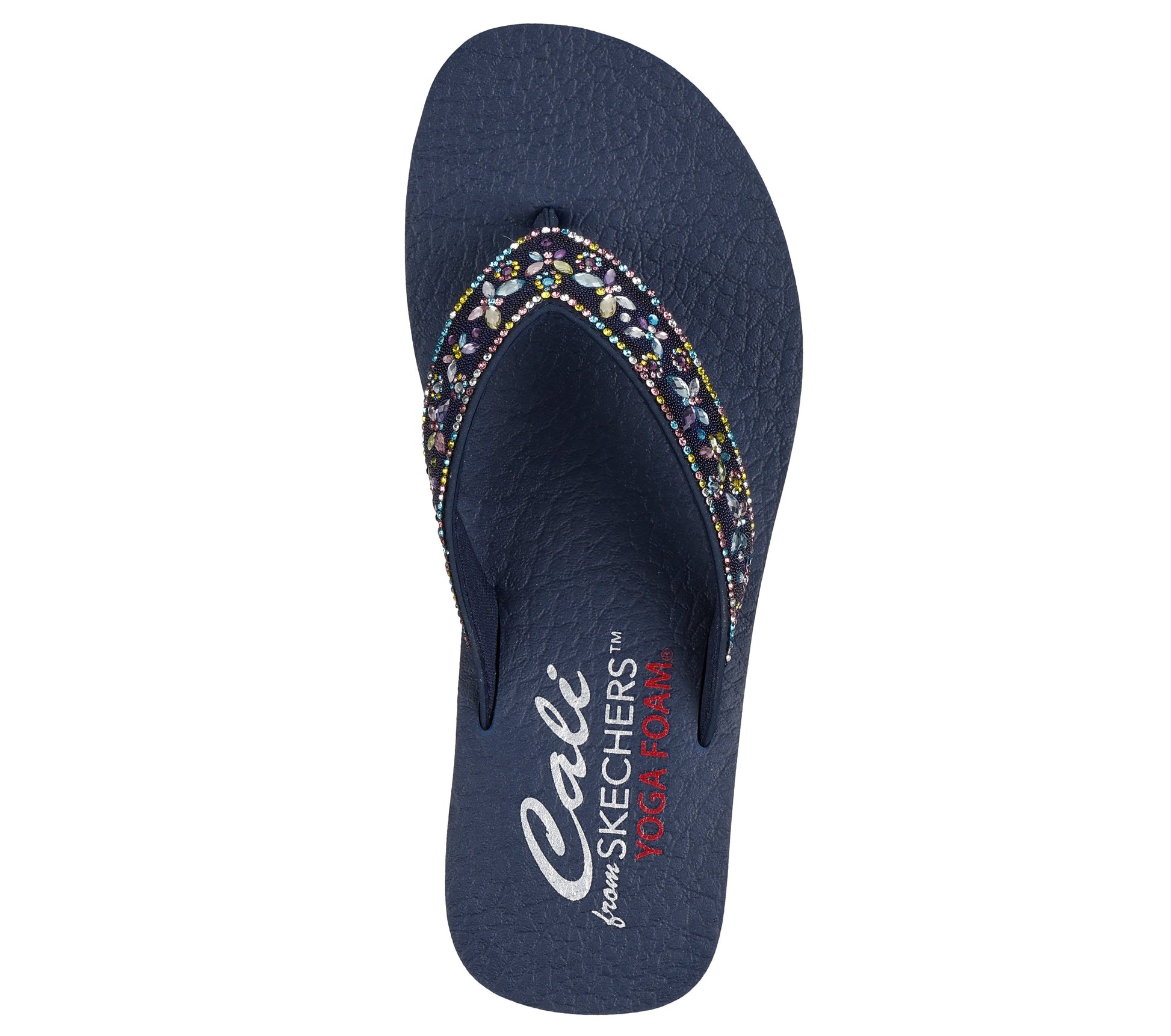 Dazzle your steps in floral style and comfort with Skechers Cali® Vinyasa - butterfly Kiss. This vegan thong sandal features a synthetic upper with butterfly patterned rhinestone details and a cushioned Yoga Foam® comfort footbed.