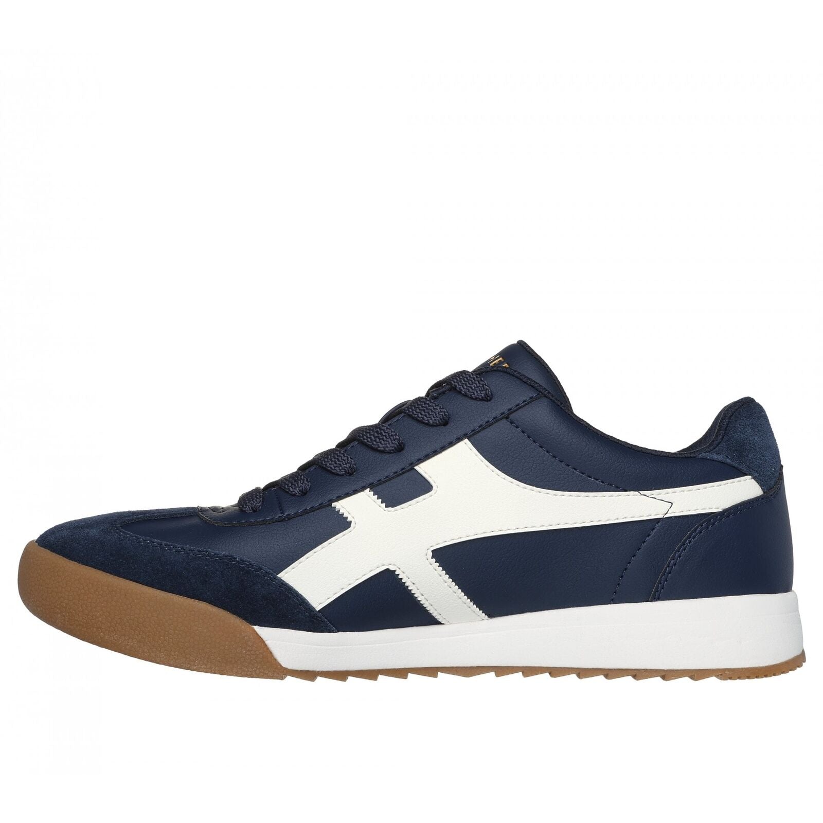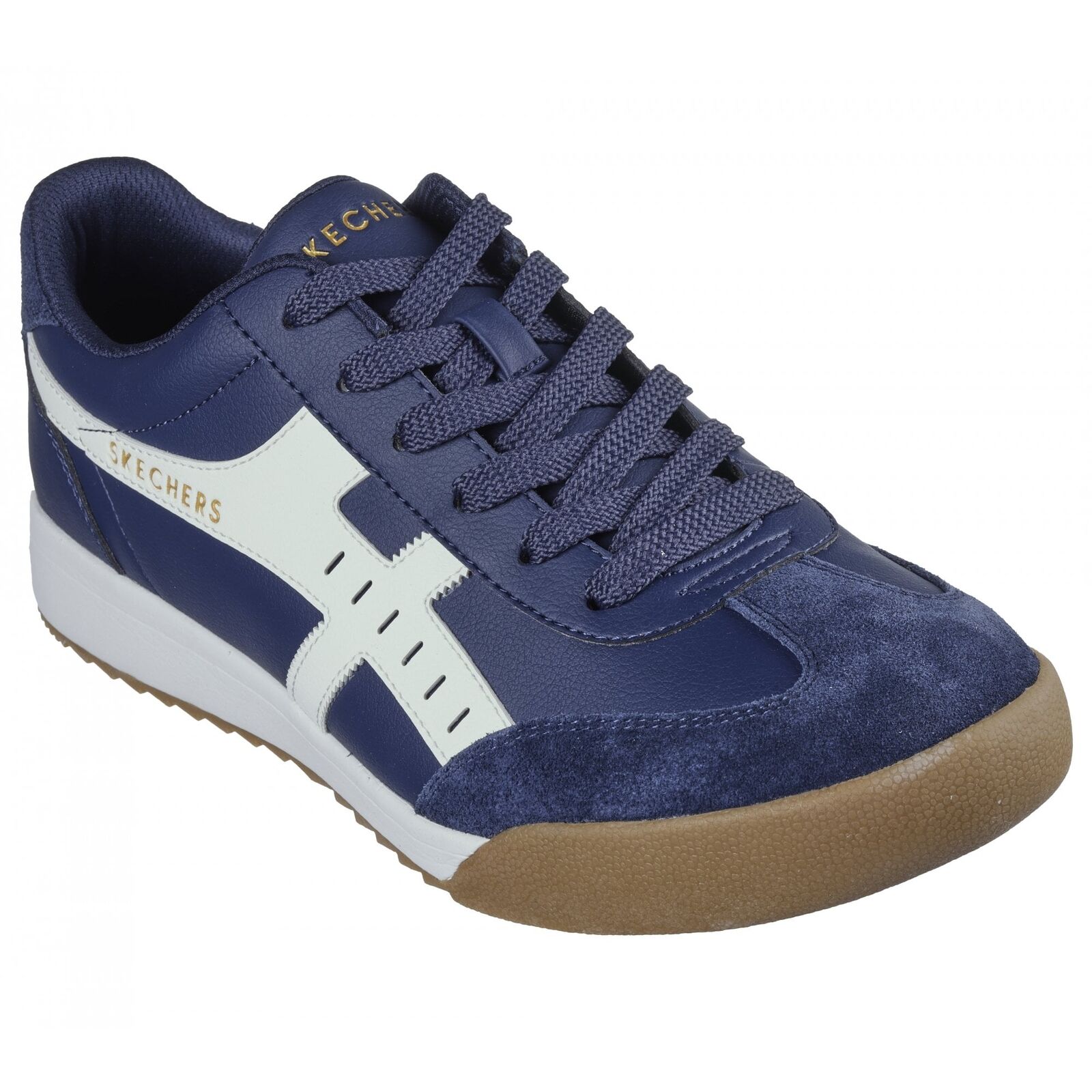 Fit yourself in throwback comfort and style wearing Skechers Street™ Zinger - Manzanilla Totale. This retro-style lace-up features a duraleather and suede overlay upper with a T-toe front, rubber traction outsole, and a Skechers Memory Foam™ insole.