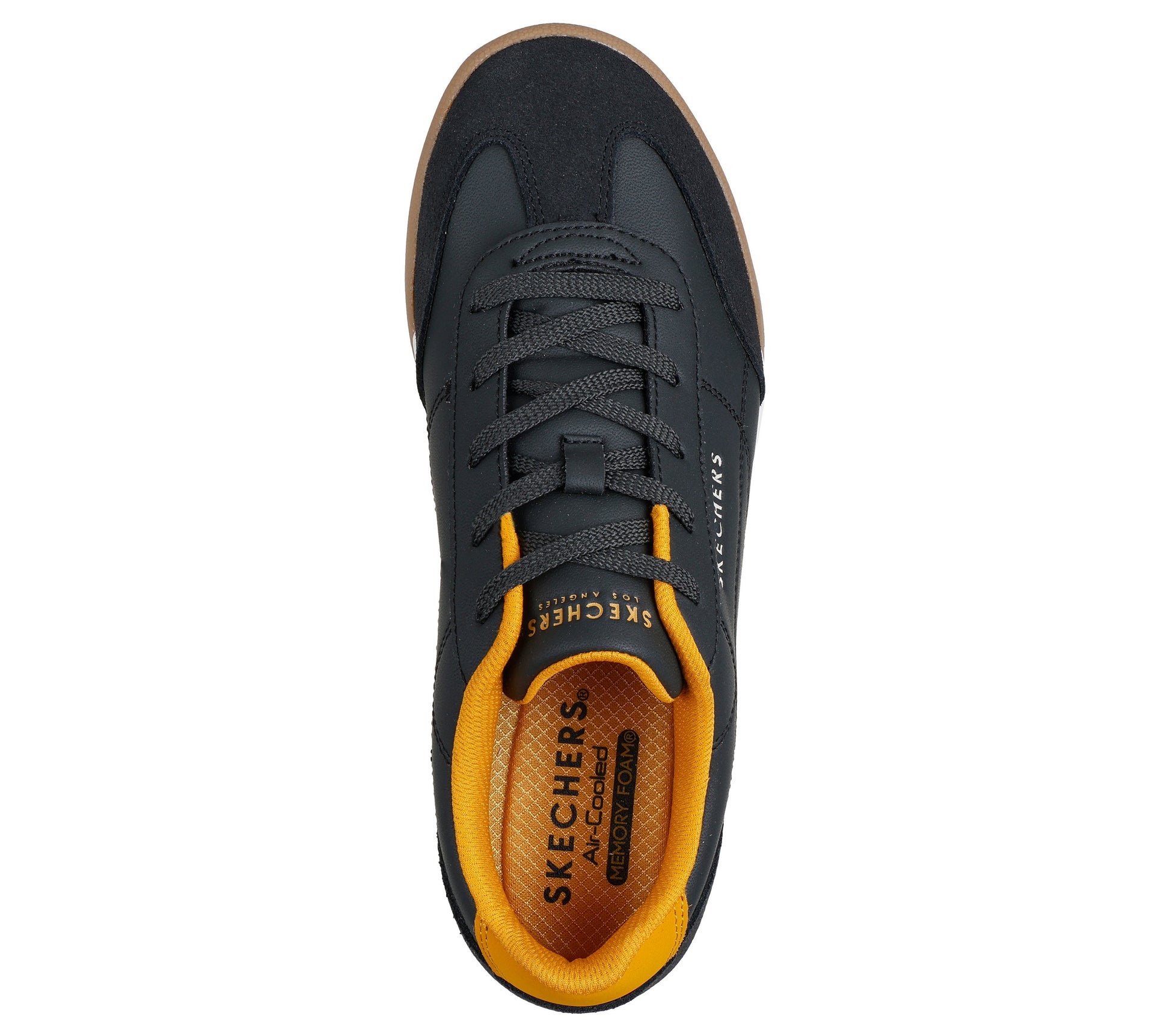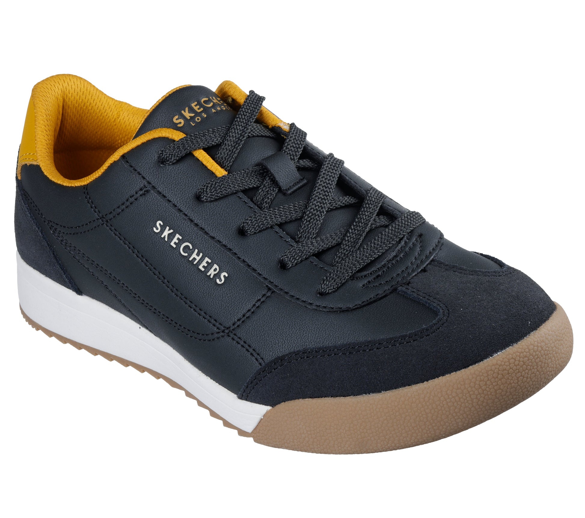 Fit yourself in throwback comfort and style wearing Skechers Street™ Zinger - Ultimate Classic. This retro-style lace-up features a duraleather, mesh, and suede overlay upper with a T-toe front, rubber traction outsole, and a cushioned Skechers Air-Cooled Memory Foam® insole.
