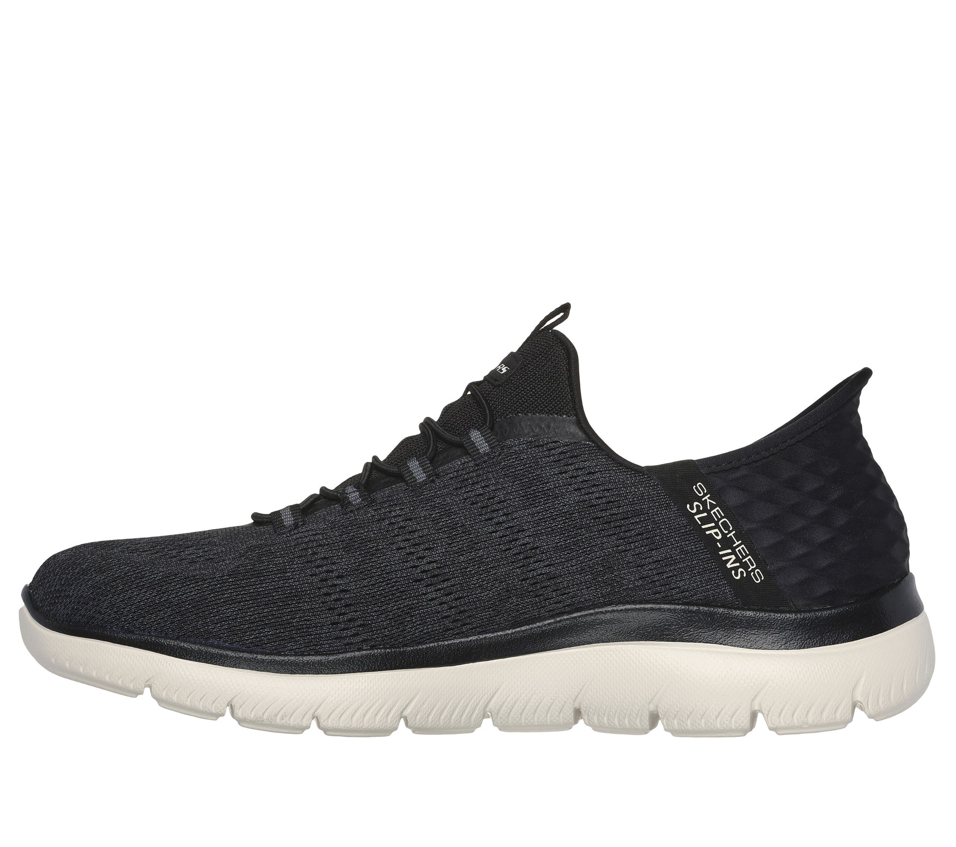 Step into easy-wearing comfort with Skechers Hands Free Slip-ins®: Summits - Key Pace. Along with our Exclusive Heel Pillow™ that holds your foot securely in place, this vegan style features an engineered mesh upper with stretch laces and a cushioned Skechers Air-Cooled Memory Foam® insole.