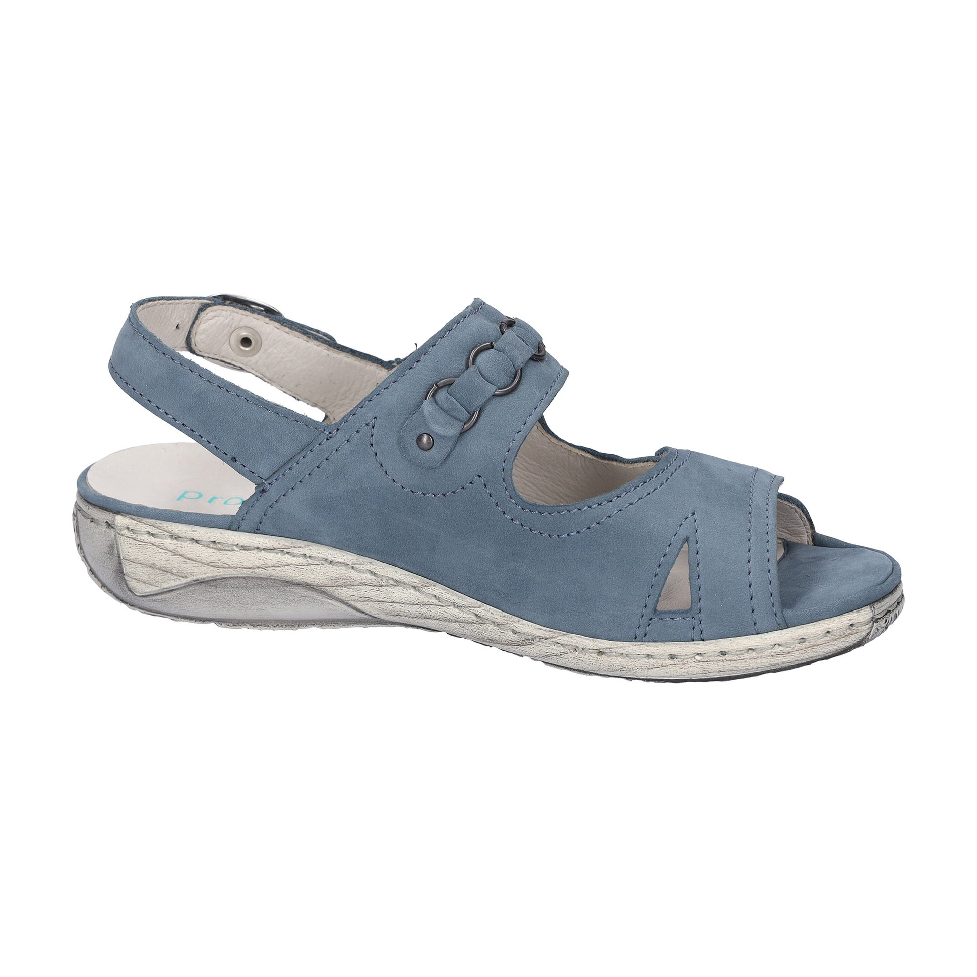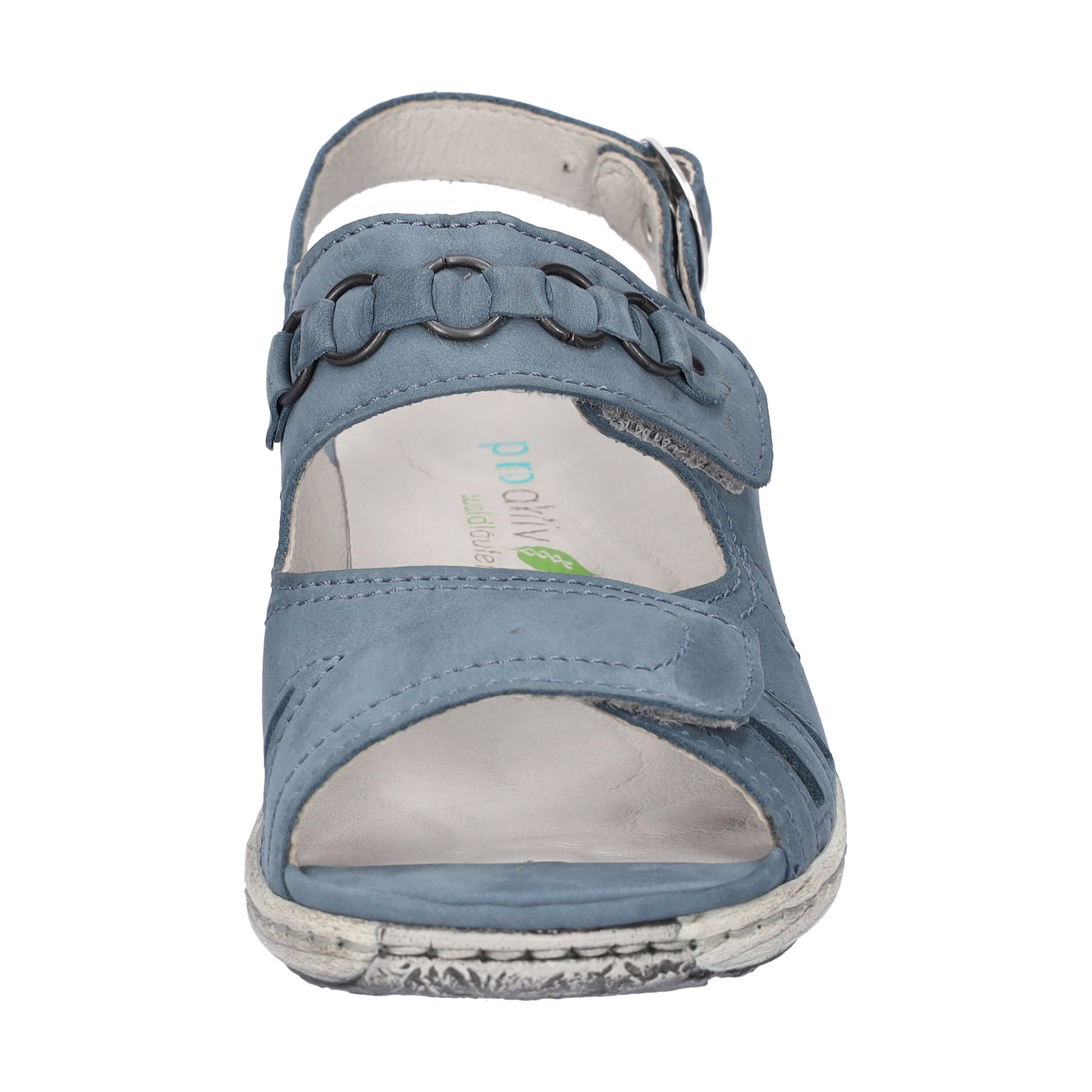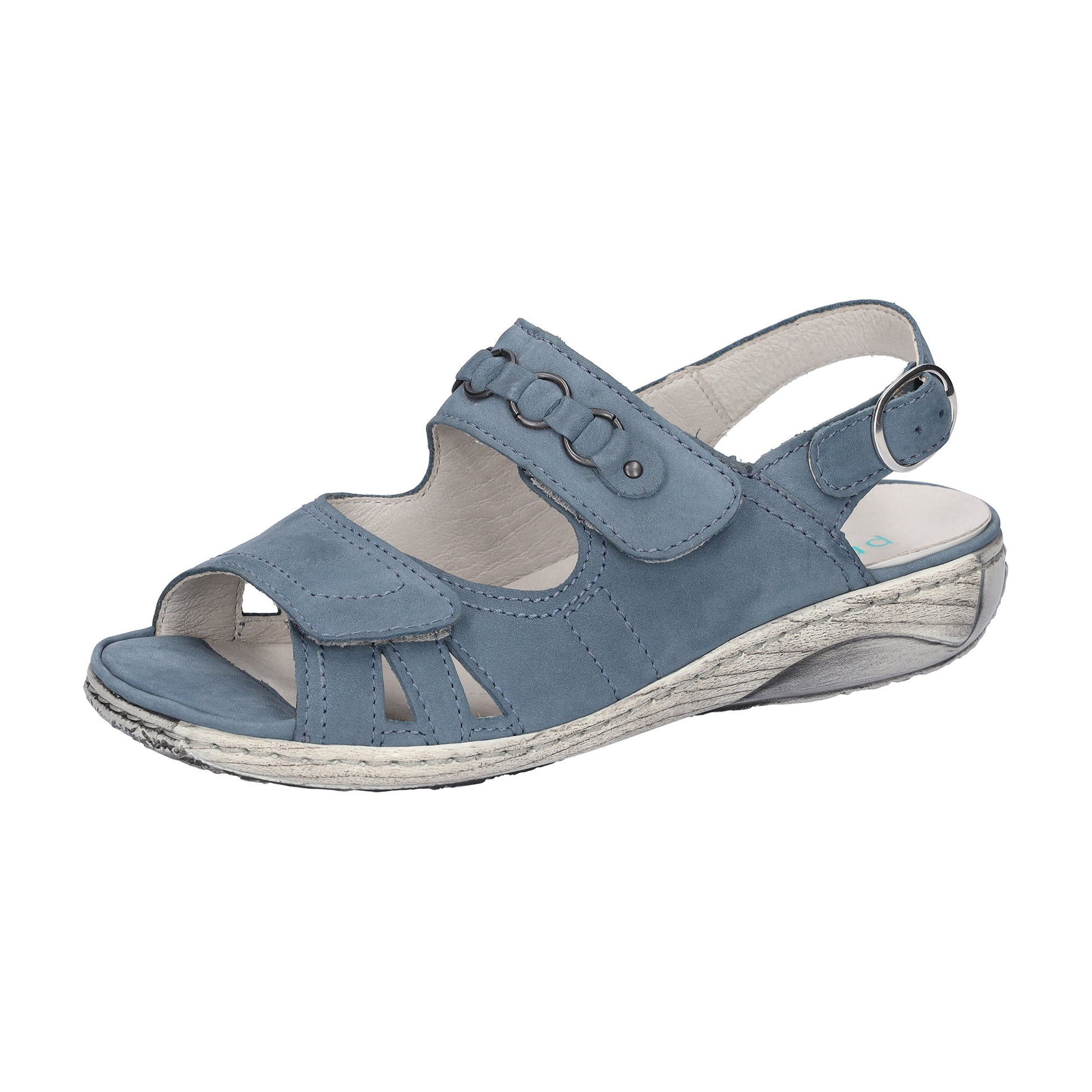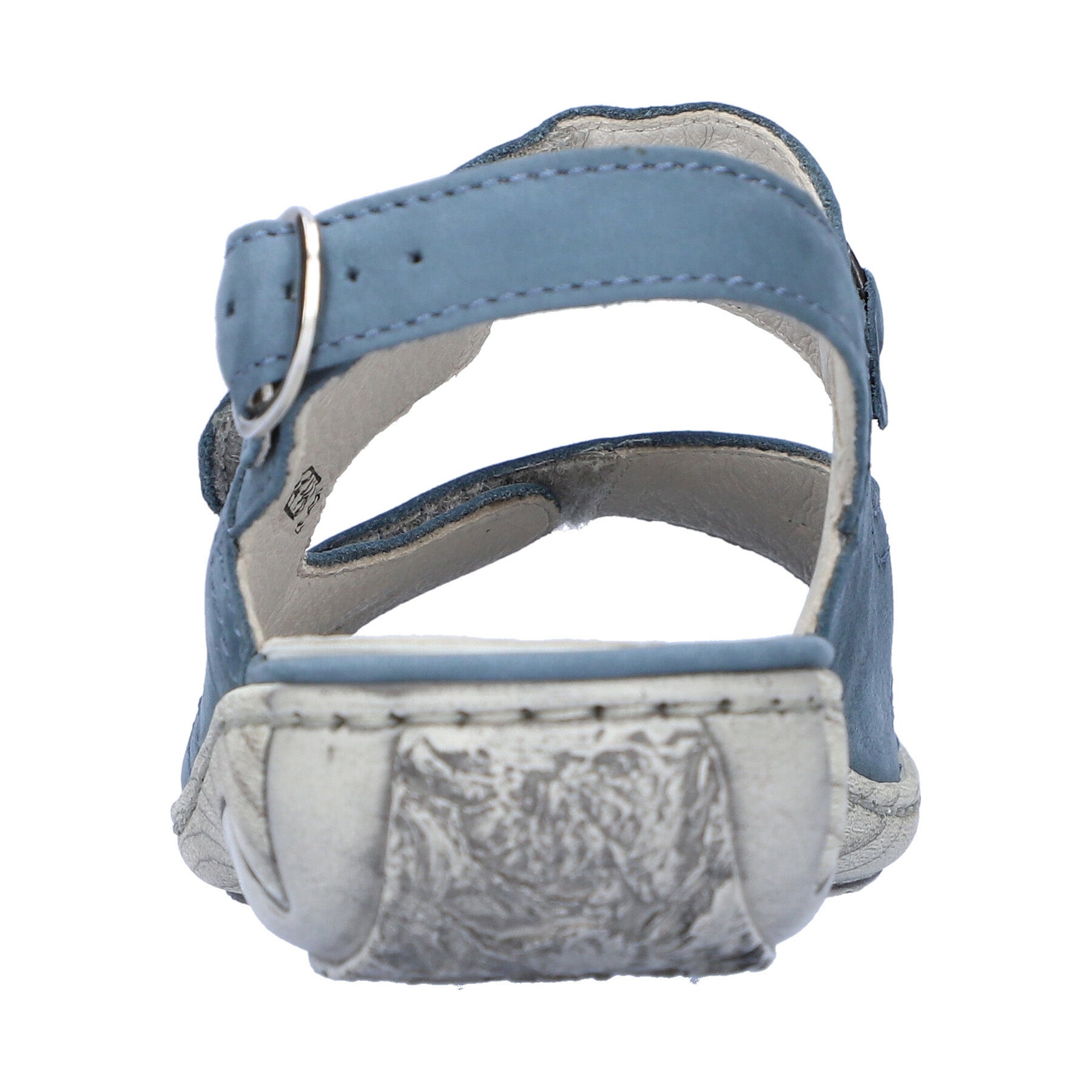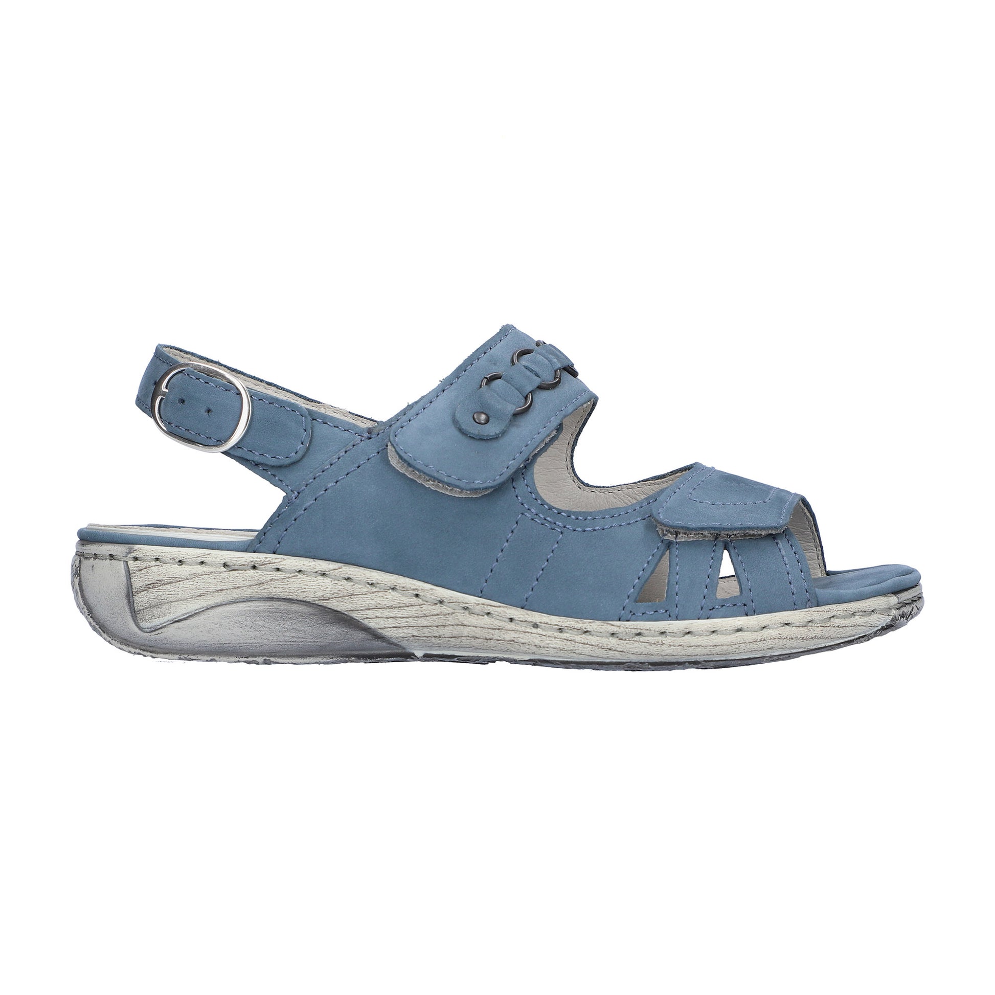 Waldlaufer soft denim nubuck leather sandals with cut out detail. These adjustable walking sandals are fully leather lined and have a soft cushioned foot bed.