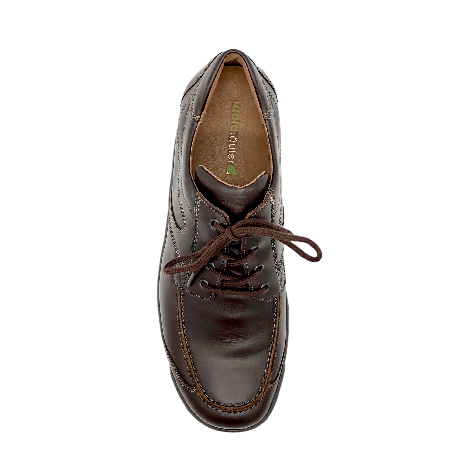 Waldlaufer Men's lace up shoes with hard wearing rubber soles. These are medium wide sturdy leather shoes with a leather insole and built up arch support. The square toe shape ensures the width continues down to the toes.