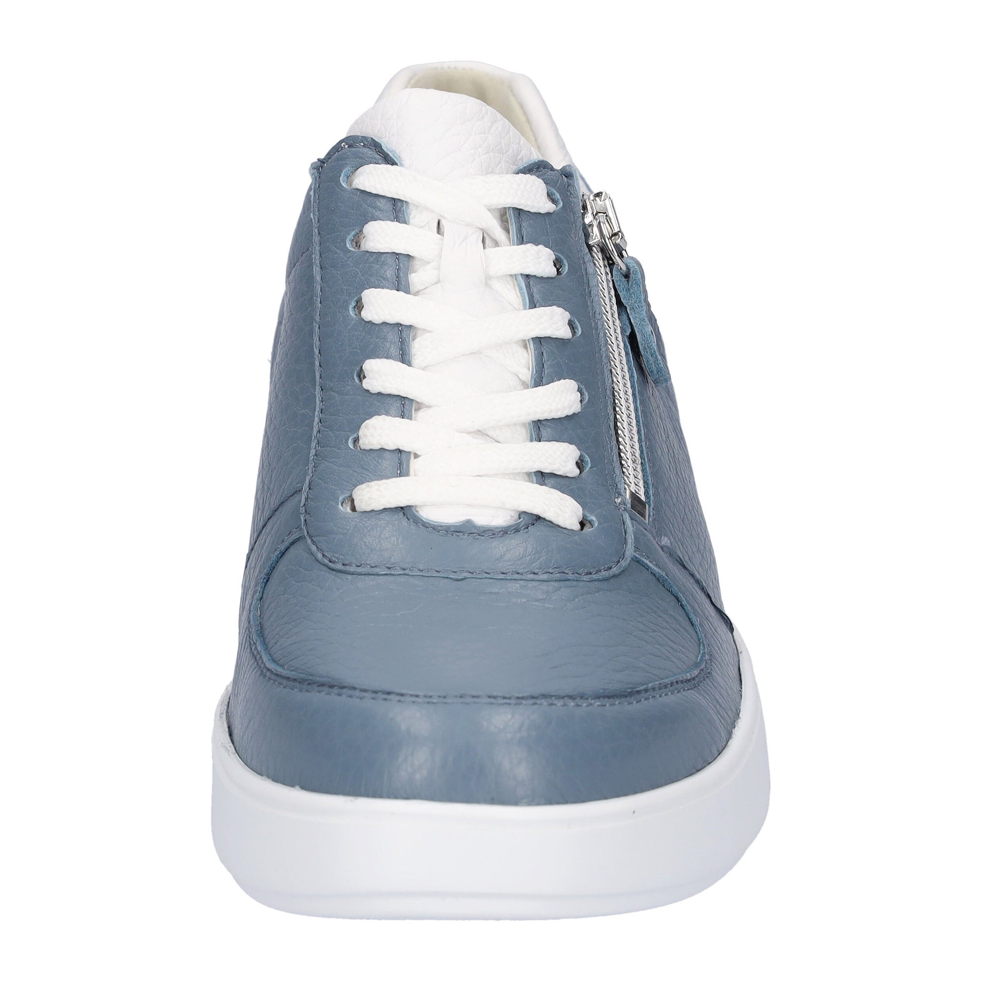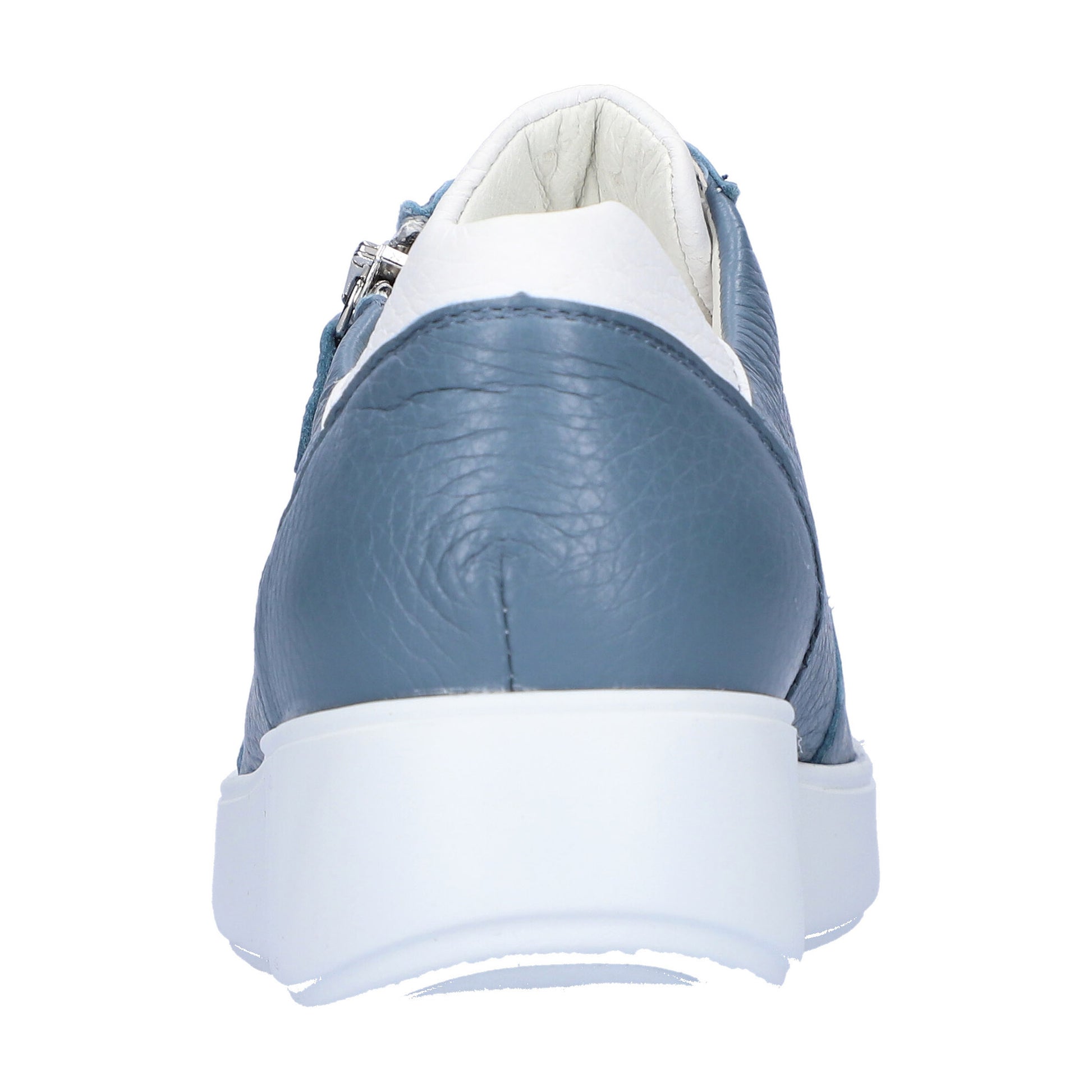 Super soft deerskin leather shoes in a beautiful shade of denim blue full grain leather. K-Lili has a light weight wedge heel sole unit and a 3/4 leather lining including a cushioned, removable leather footbed.