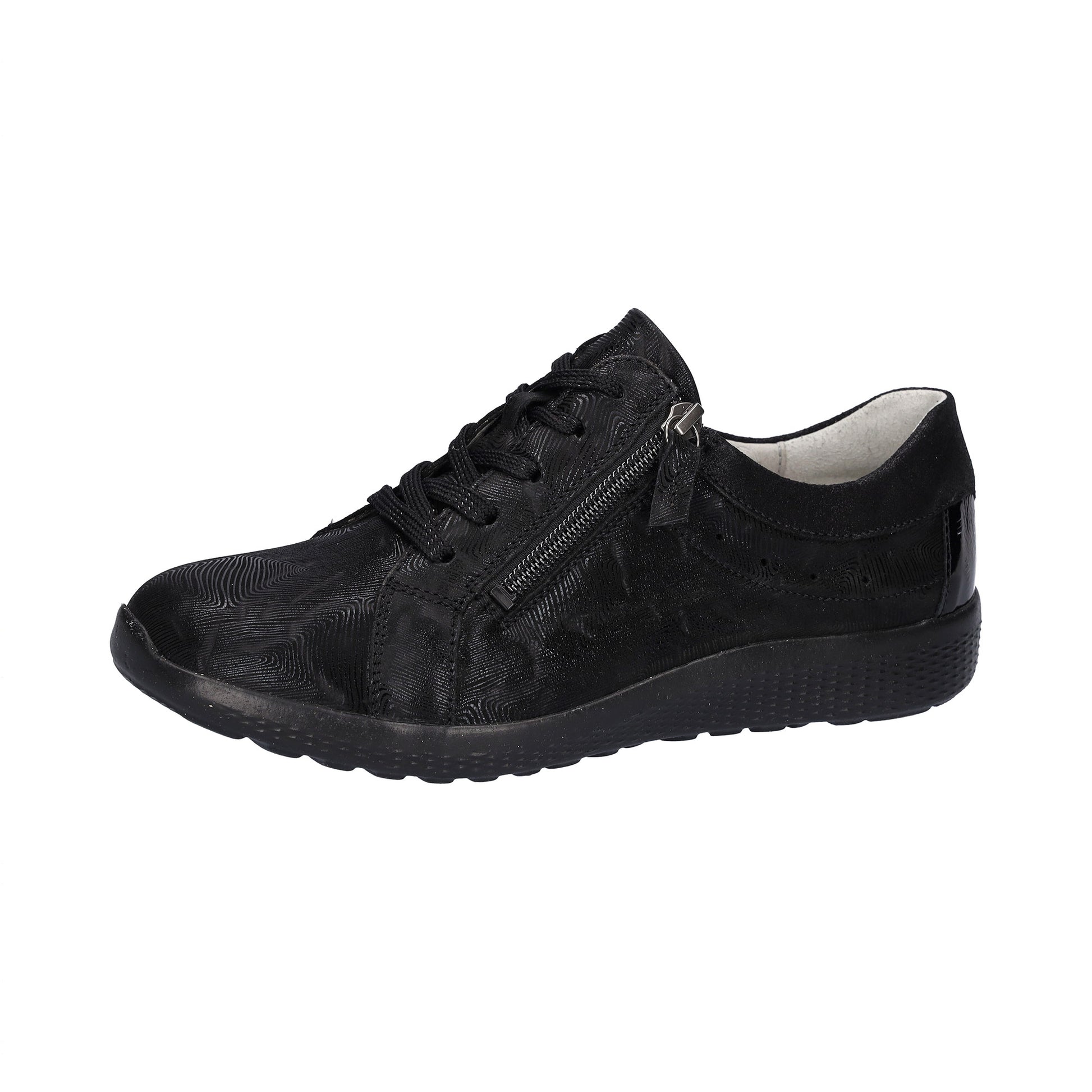 K- Ira extra wide fit trainers with ultra light weight sole and adjustable lace and zip fastening. This is an exceptionally soft and comfortable leather shoe. The printed nubuck leather makes these shoes just that little bit smarter and comfortable than your average pair of shoes. K-Ira requires no breaking in, it's just instant comfort. K fit shoes have a deeper toe box than Waldlaufer H fit shoes.
