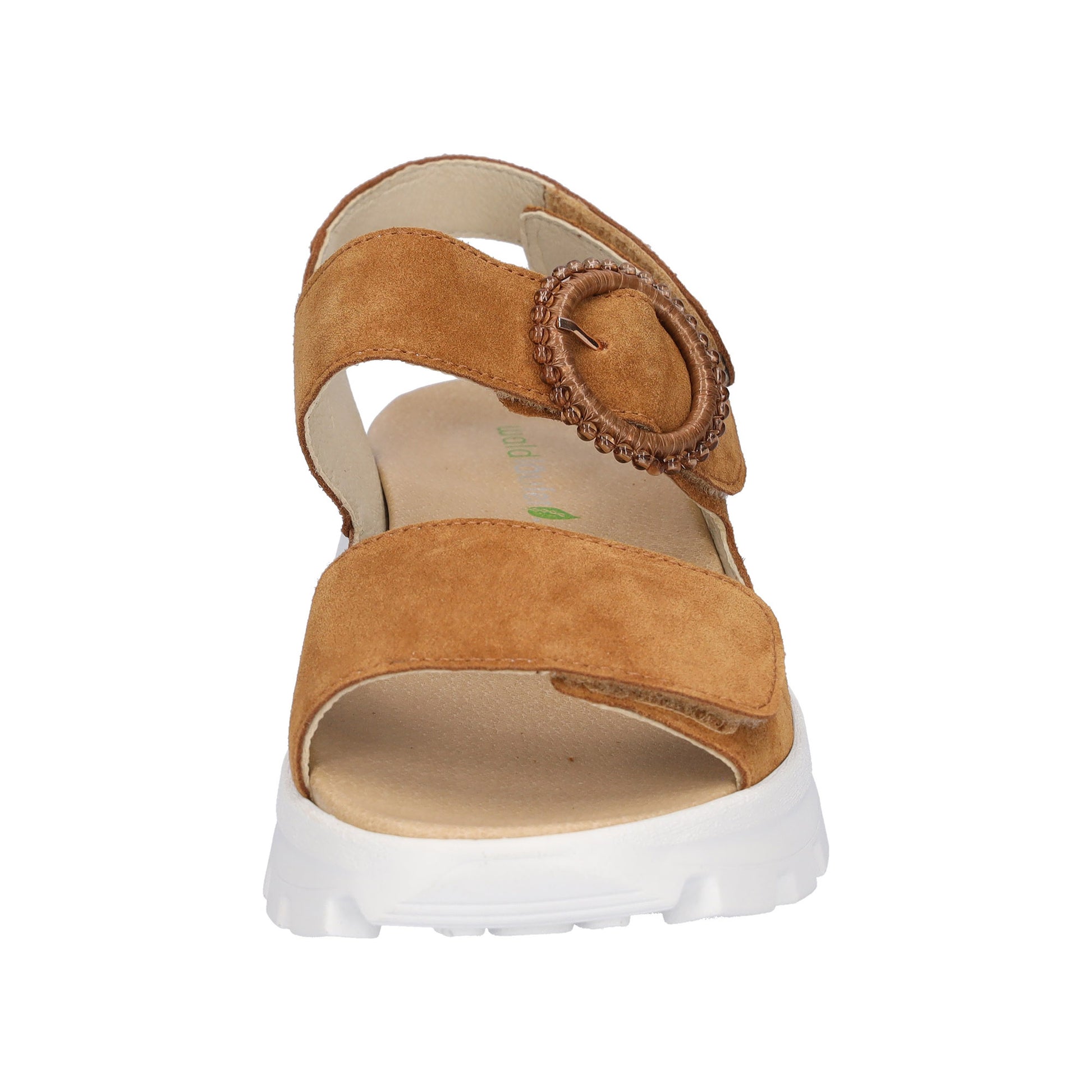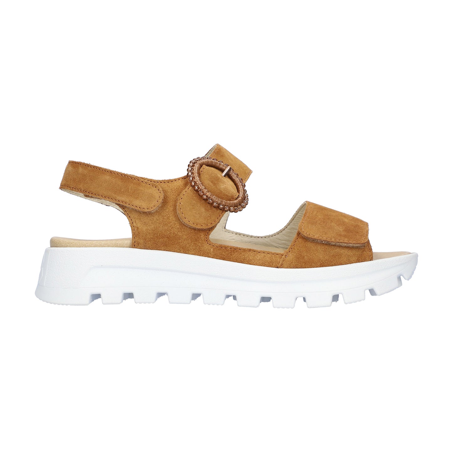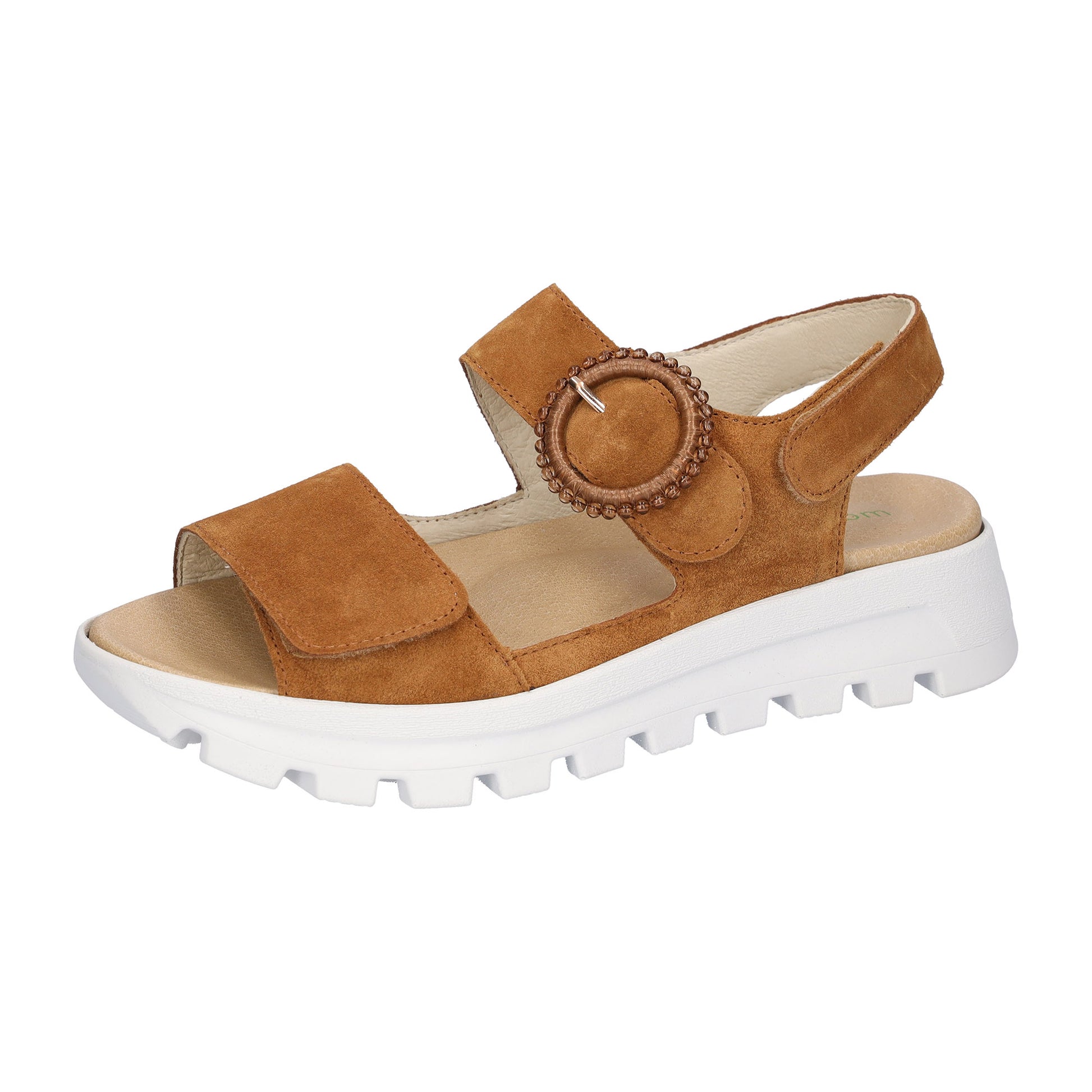 Waldlaufer soft tan suede sandals with bouncy dual-layer cushioned soles. These funky walking sandals give unparalleled comfort and with a 3 point adjustment, you can get the support and cushioning together. Perfect for long walks.