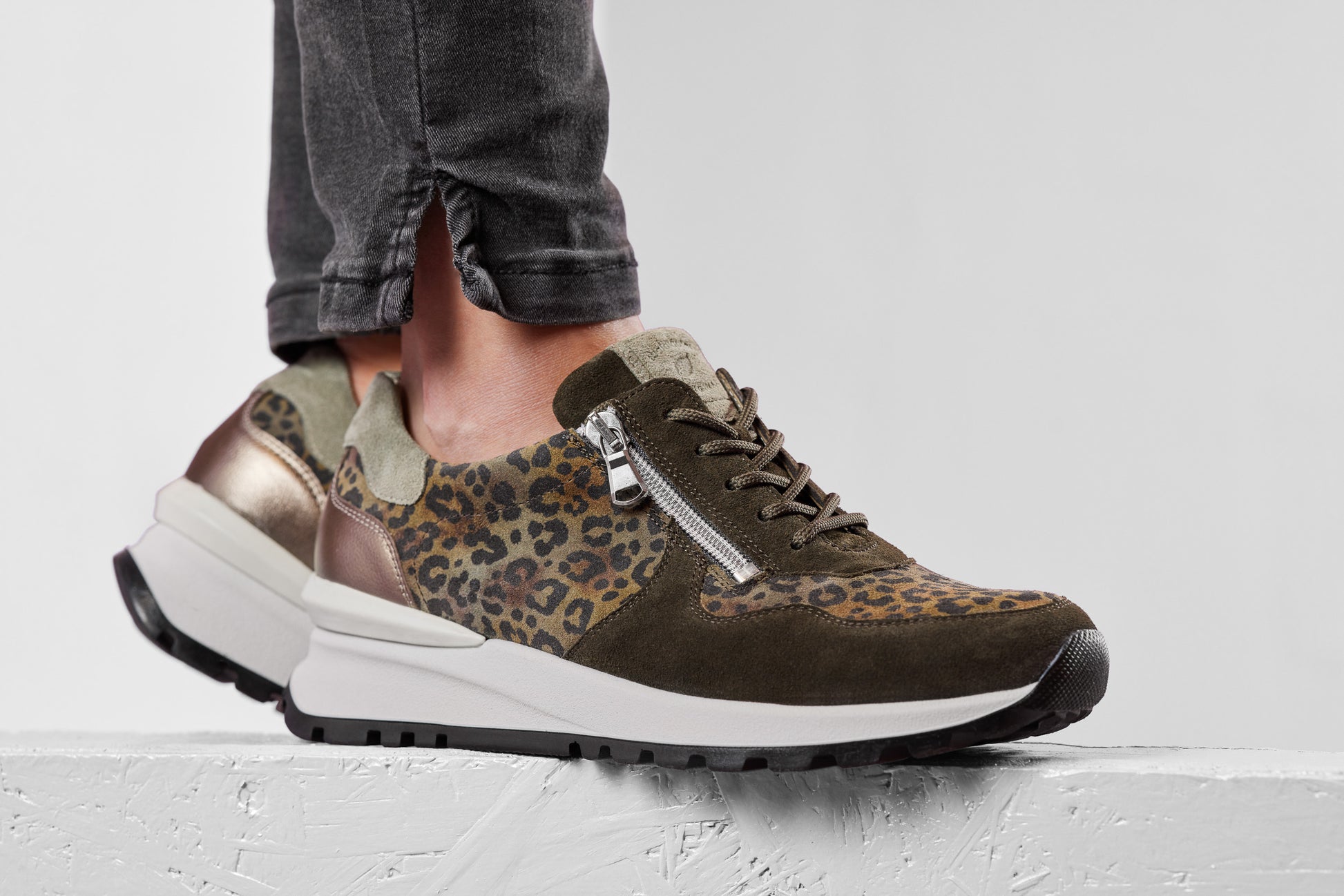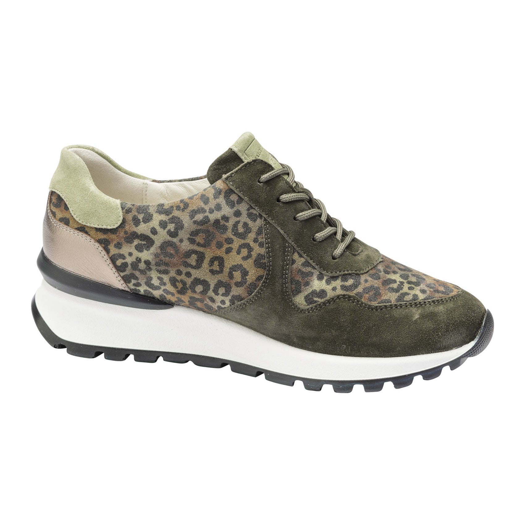 Waldlaufer H-Carolin funky green suede and leopard print trainers.