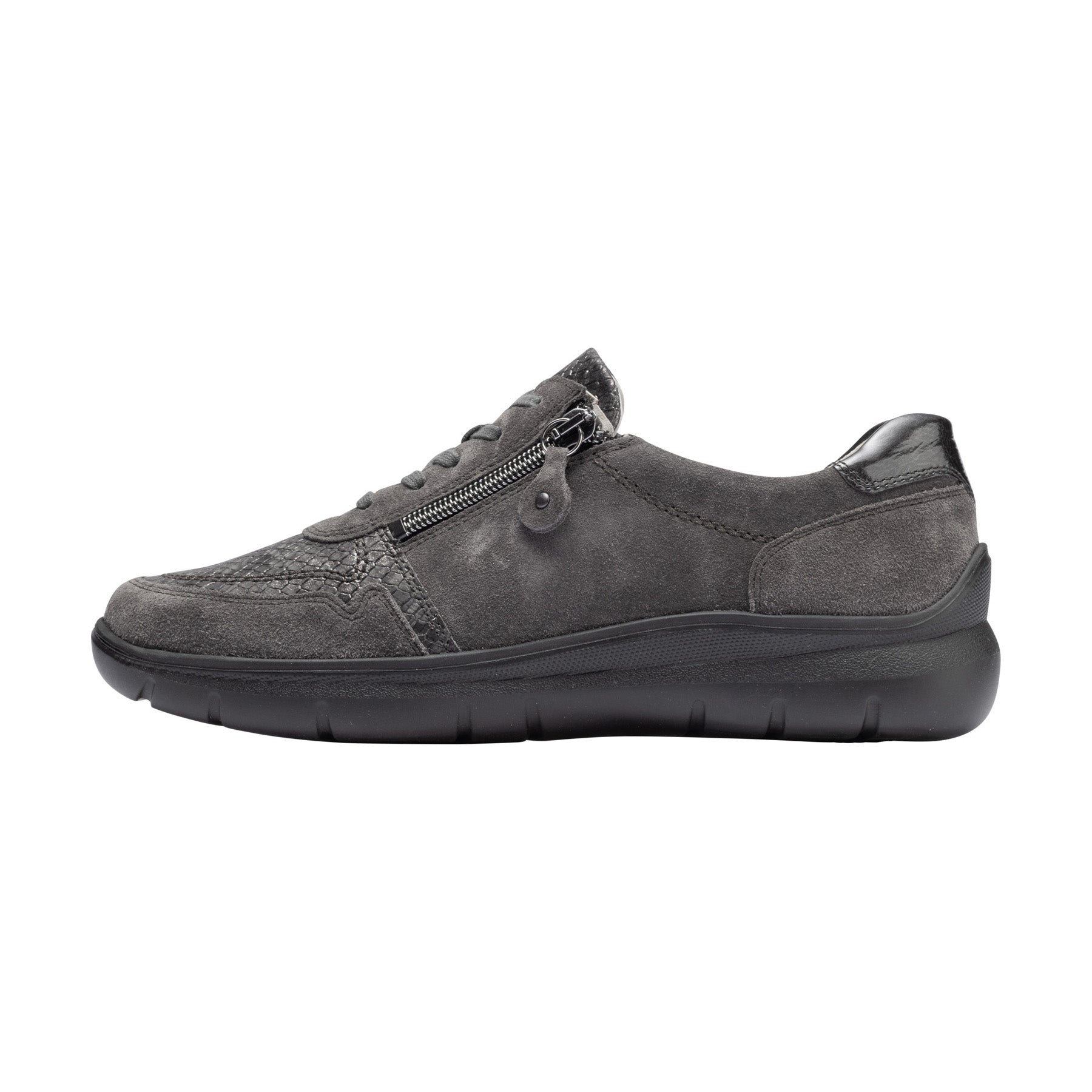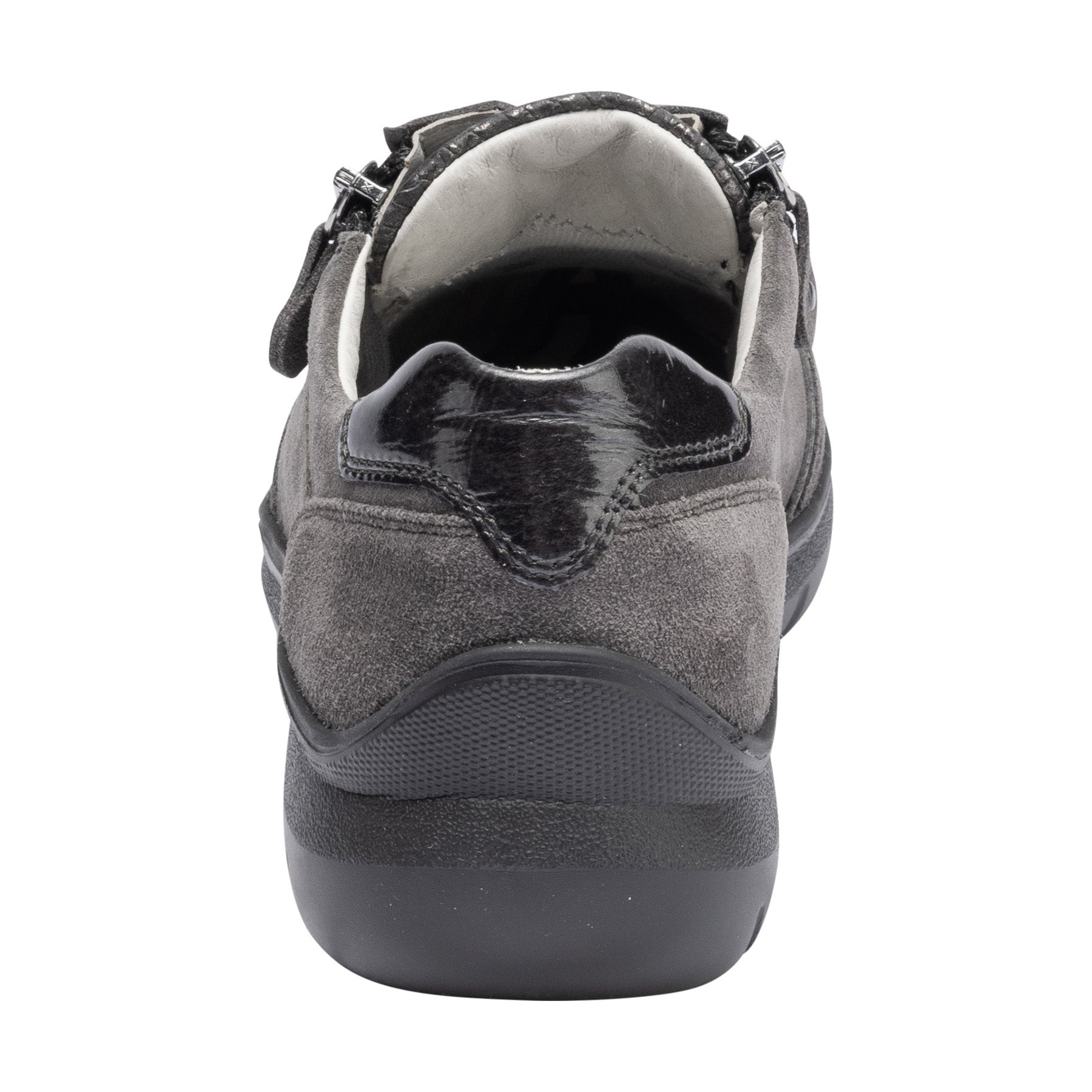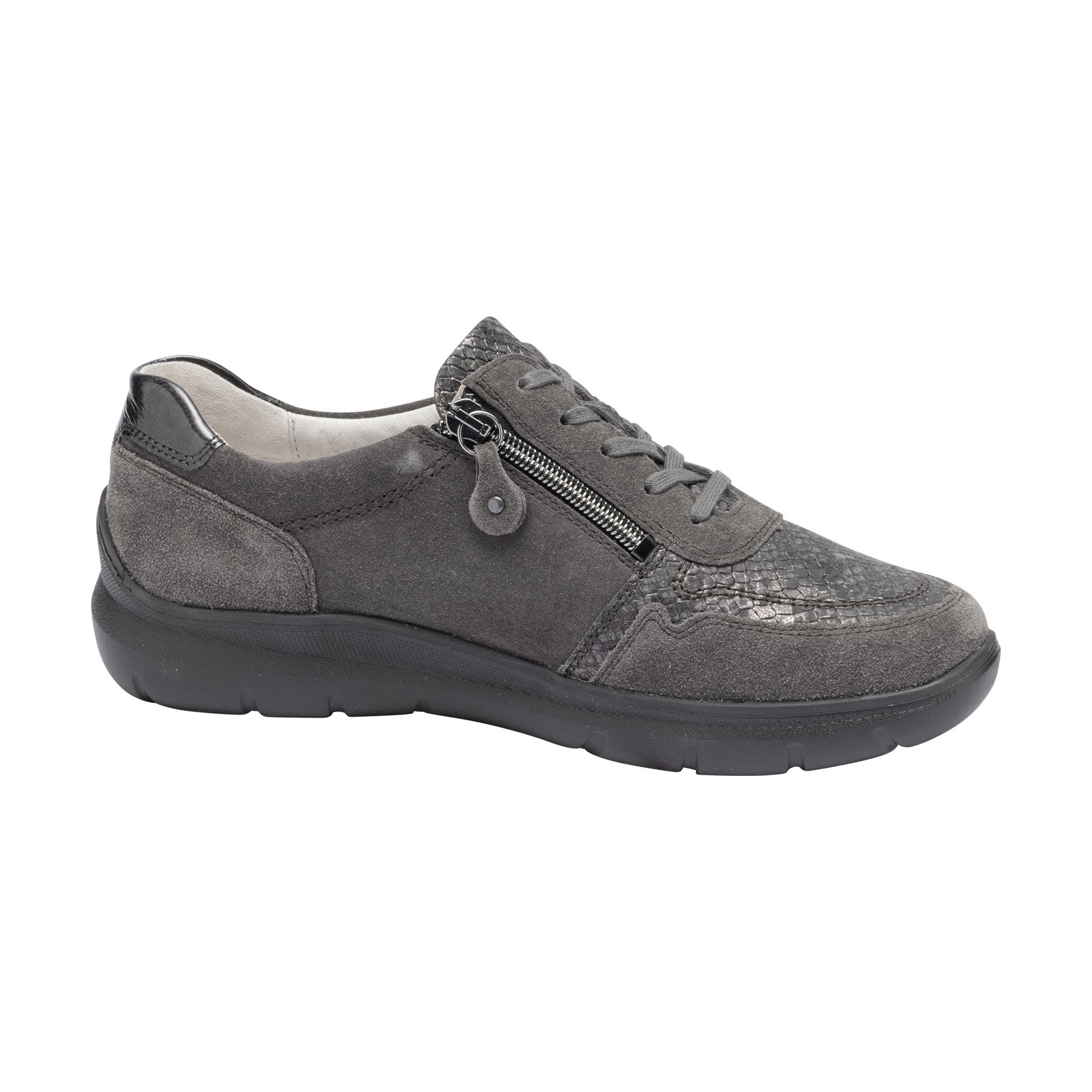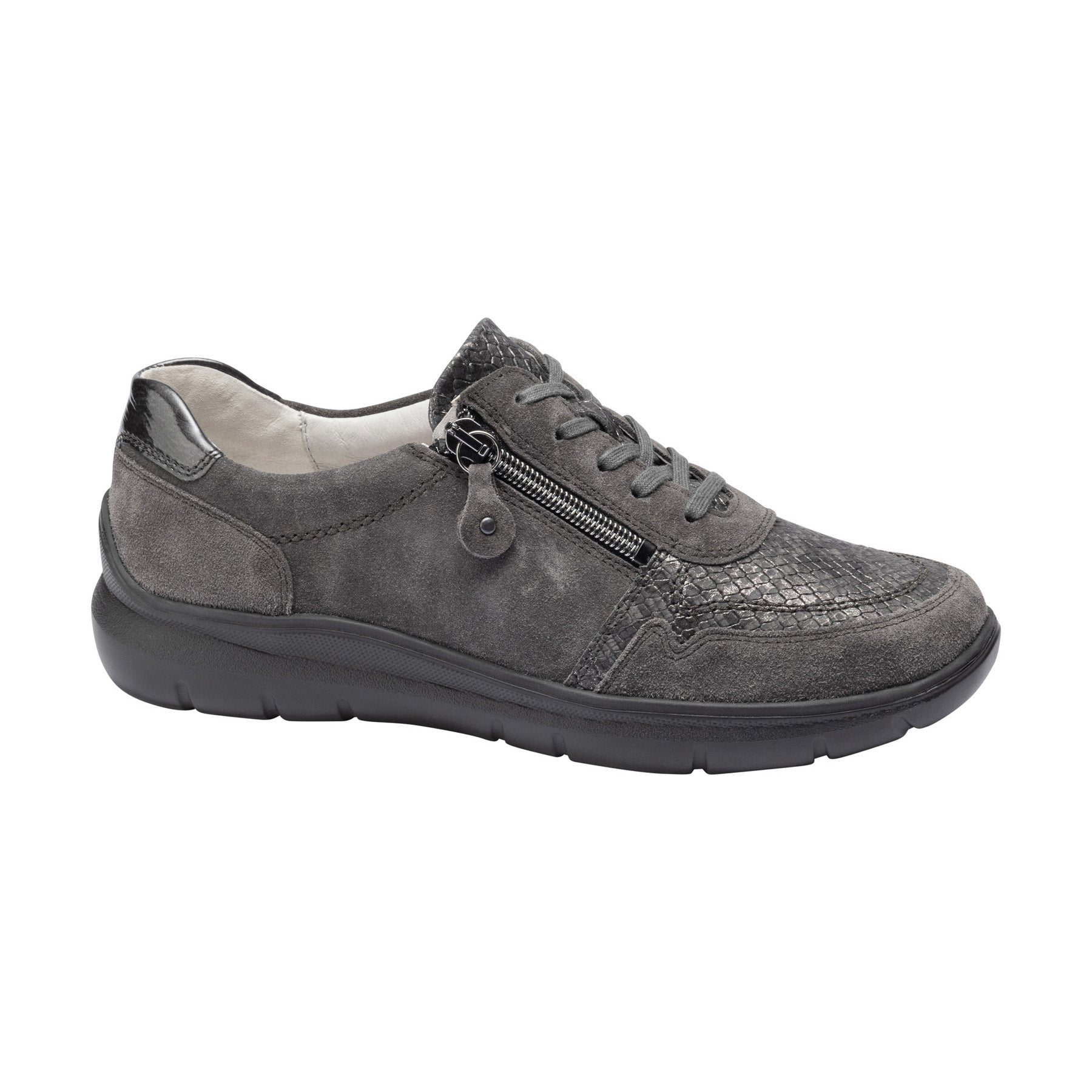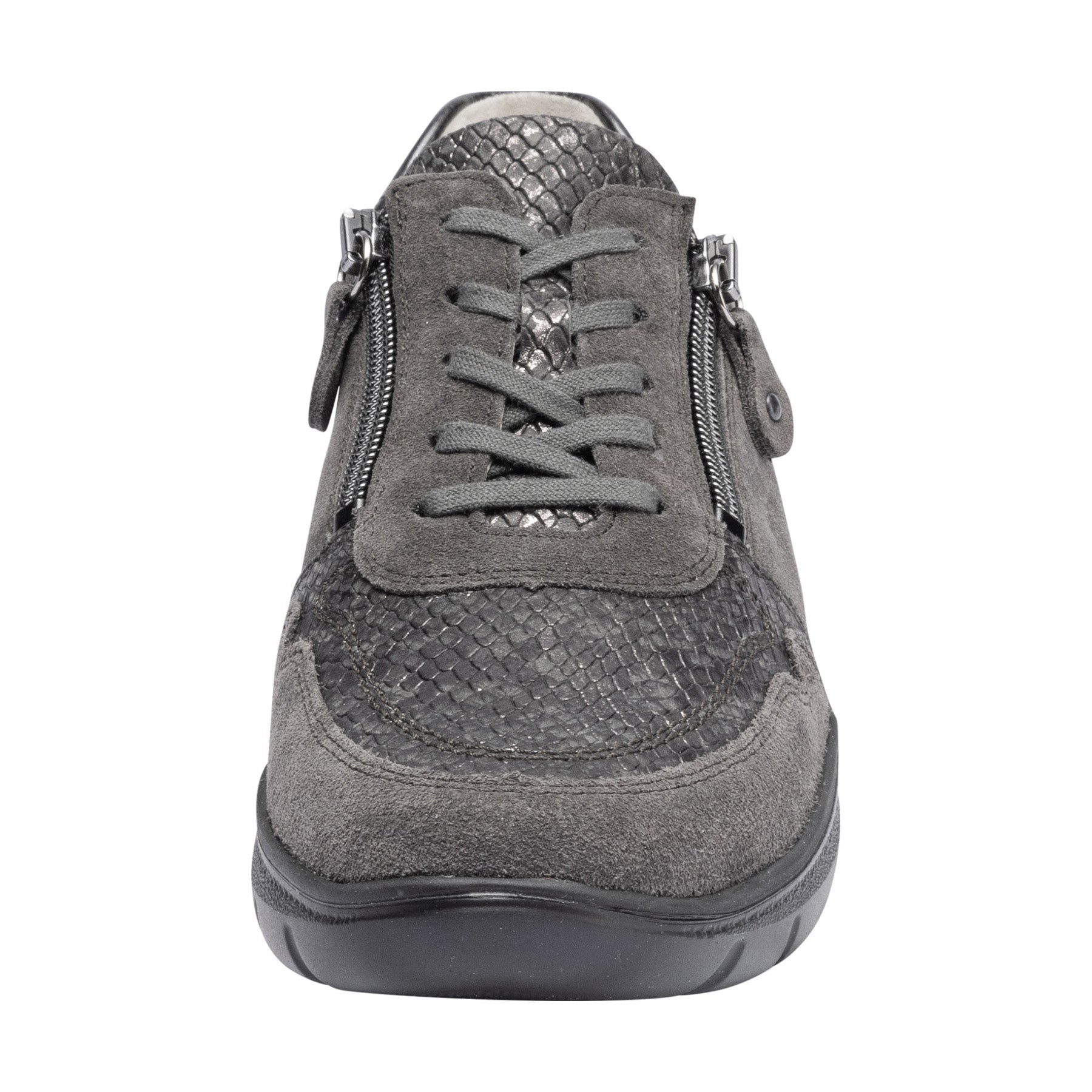 Waldlaufer H-Leonie light weight twin zip shoes made from super soft suede leather with a silvery grey snake print apron front. These comfy suede shoes require no breaking in just immediate comfort.