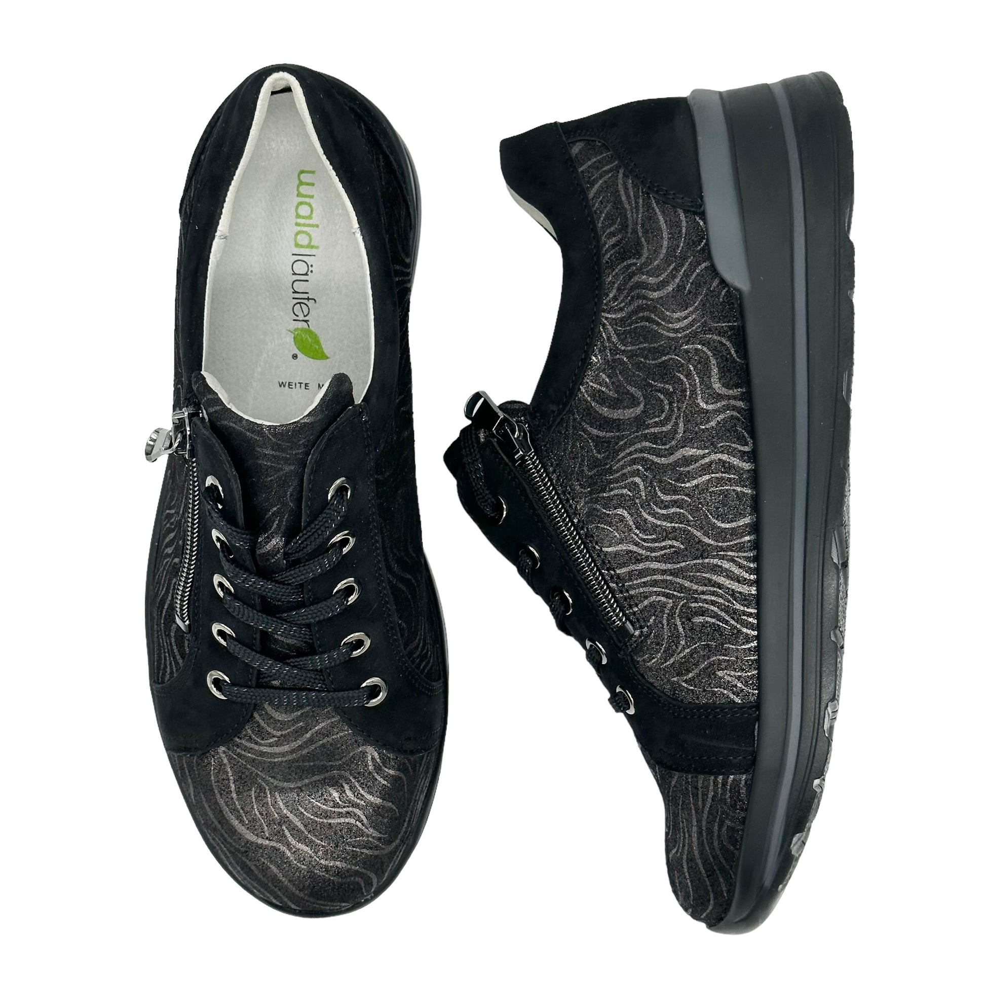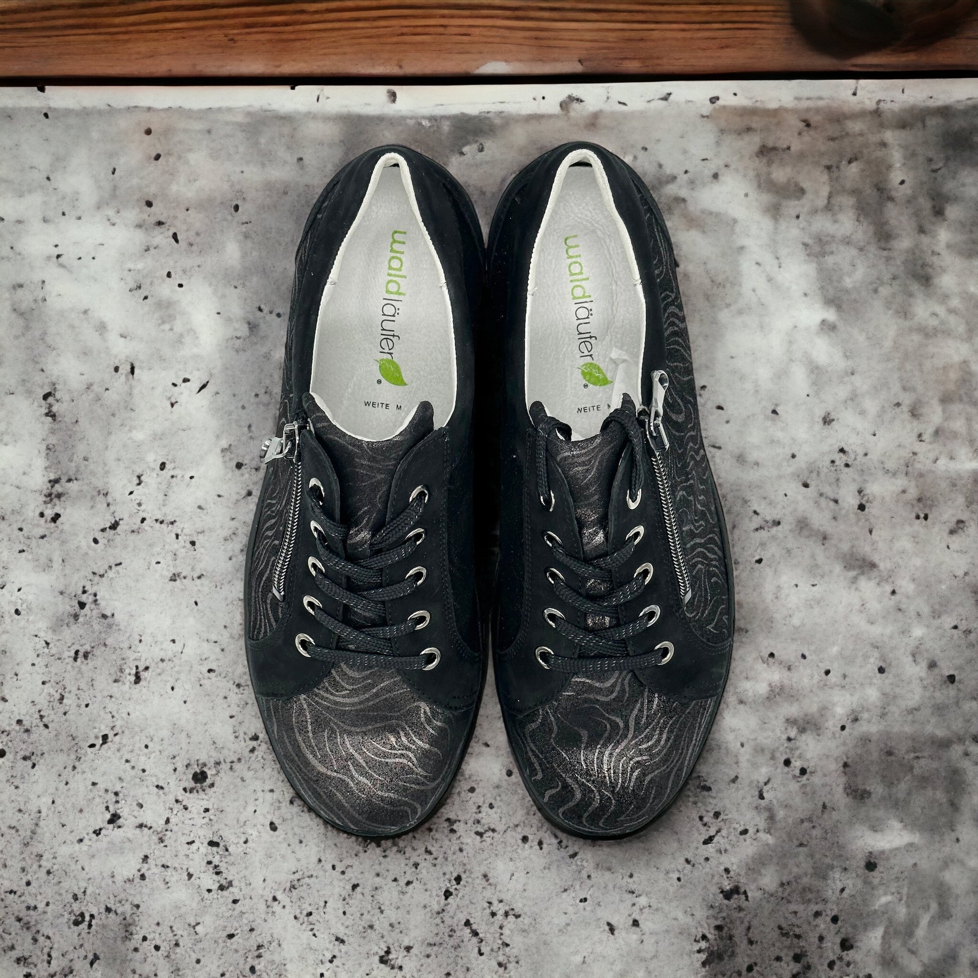 Sarah extra wide fitting soft swirl textured leather shoes. Made in an extra wide M fitting, Sarah has more depth and width at the toes than any other Waldlaufer shoe. The soft stretchy upper is perfect for any bumpy toes.