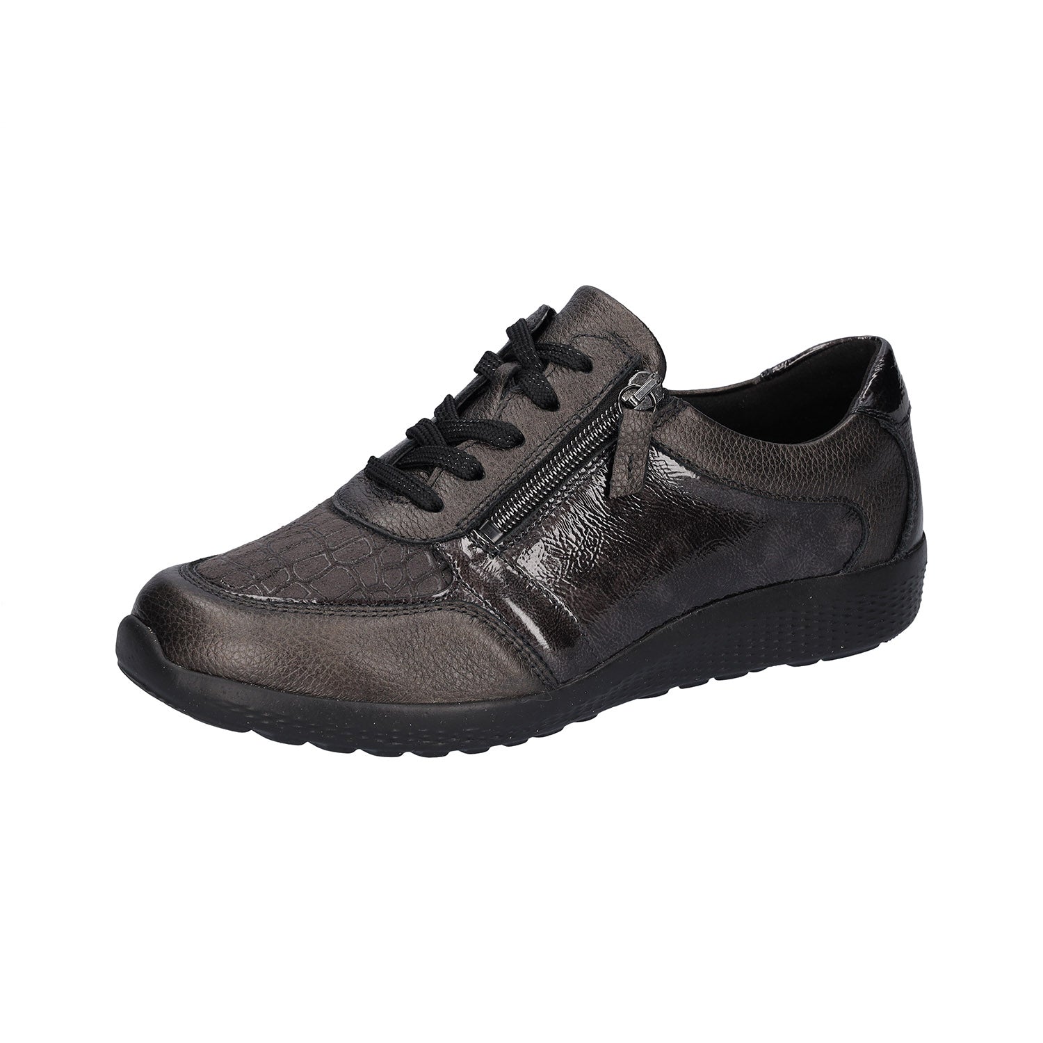 - Lace up and side zip fastening
