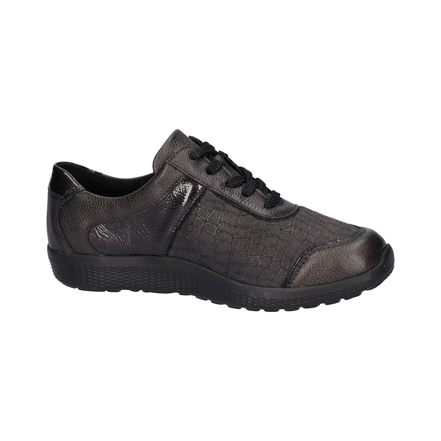 - Soft metallic leather upper with stretchy toe area