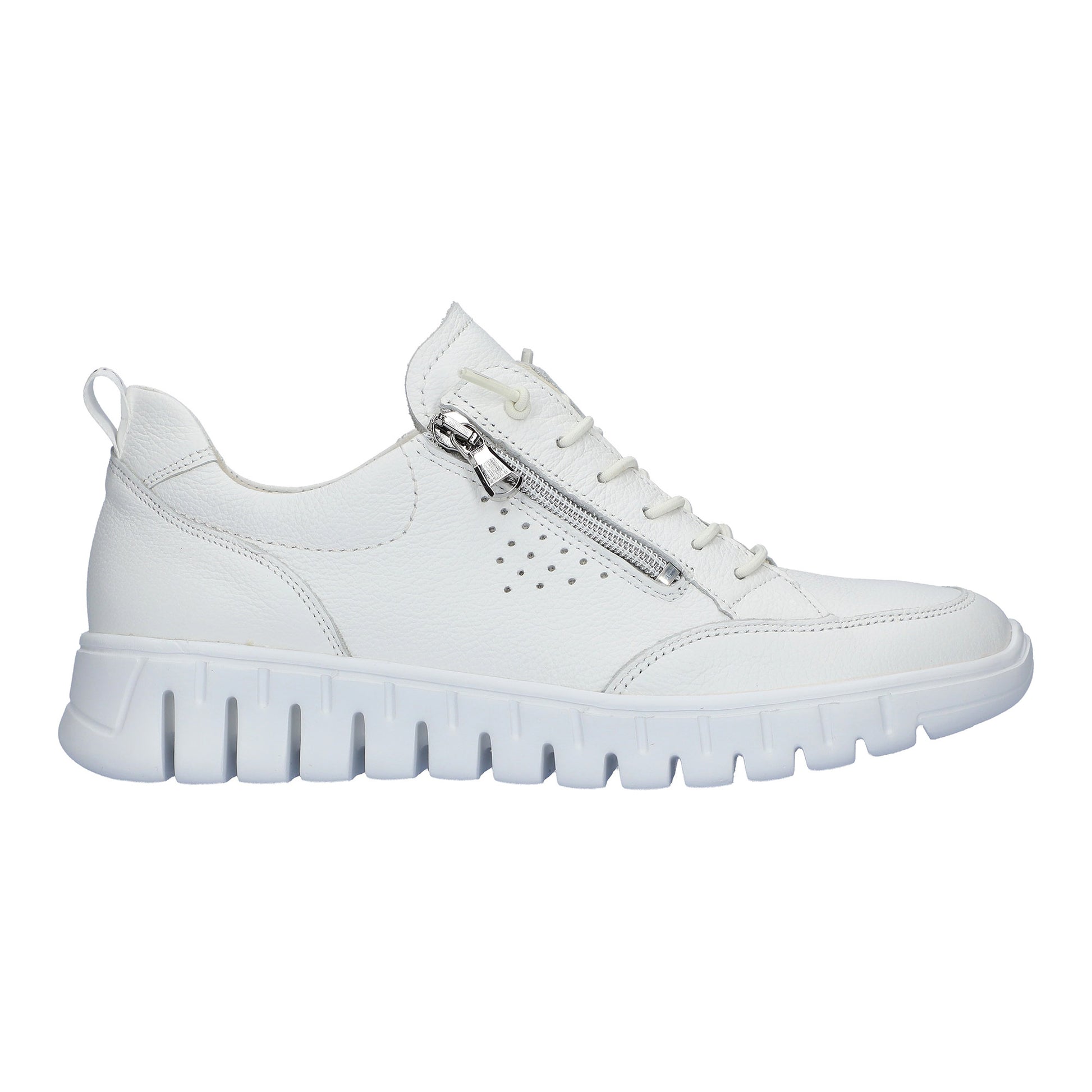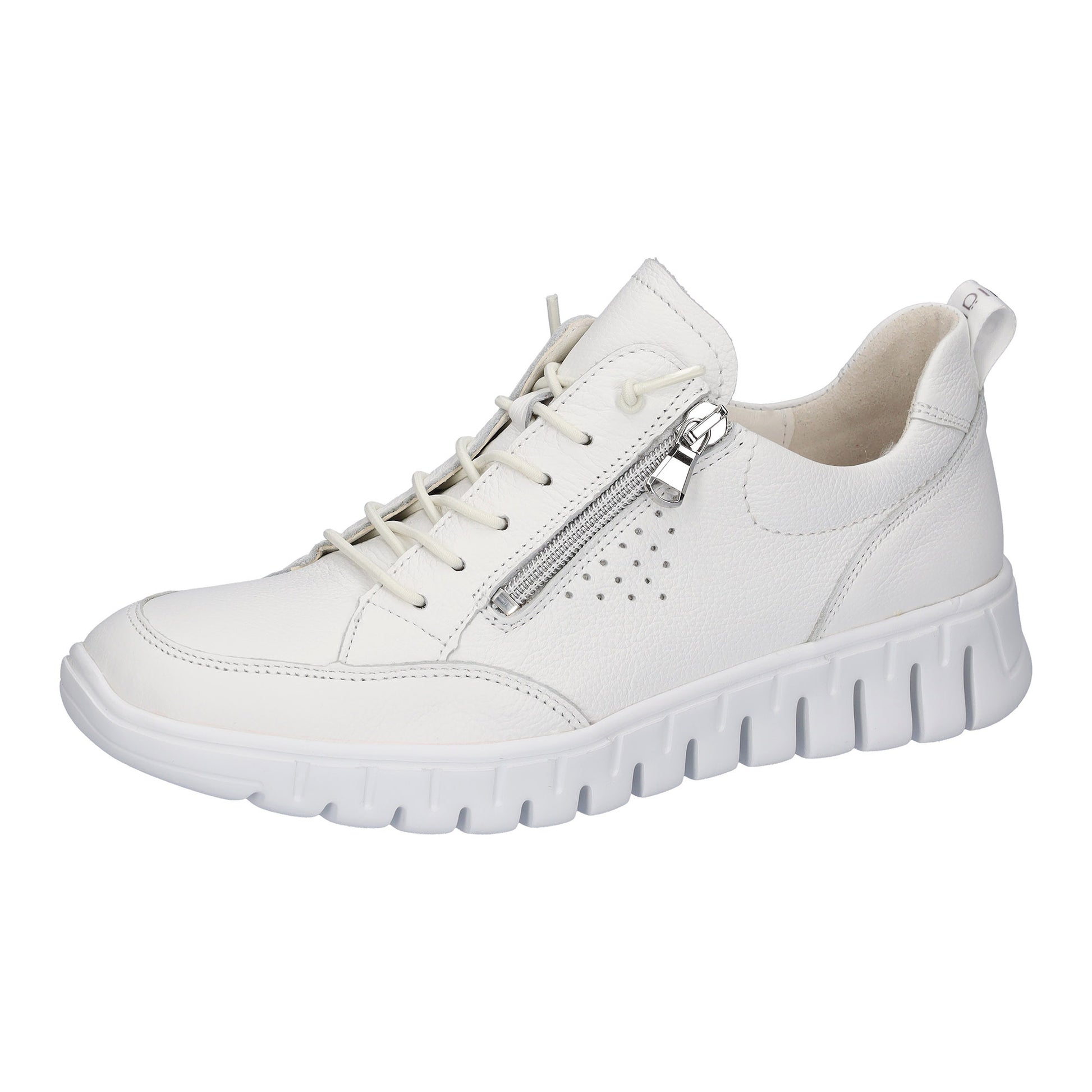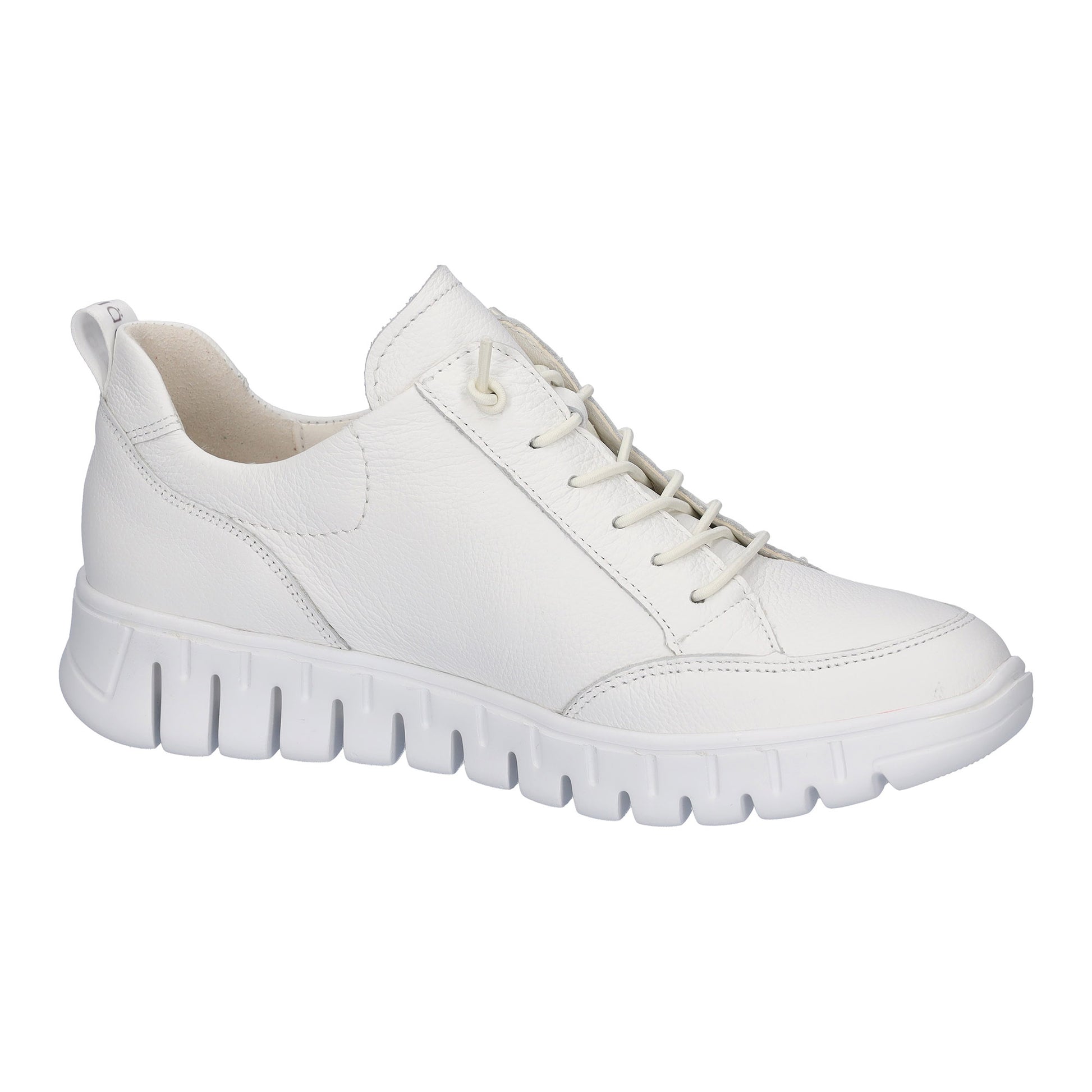 Waldlaufer H-Birdy super soft white full grained leather trainers. The deep flex wedge heel measures 40 mm giving you extra height and comfort combined. These soft leather trainers are instantly comfortable and look smart with trousers and skirts. The elastic no tie lace offers adjustment and the side zip makes this quick and easy to get on and off. H-Birdy has flat conventional laces included with every pair should you wish to exchange them.